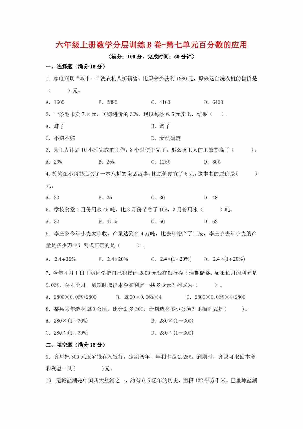 六年级(上)北师版数学第七单元百分数的应用单元测试B卷