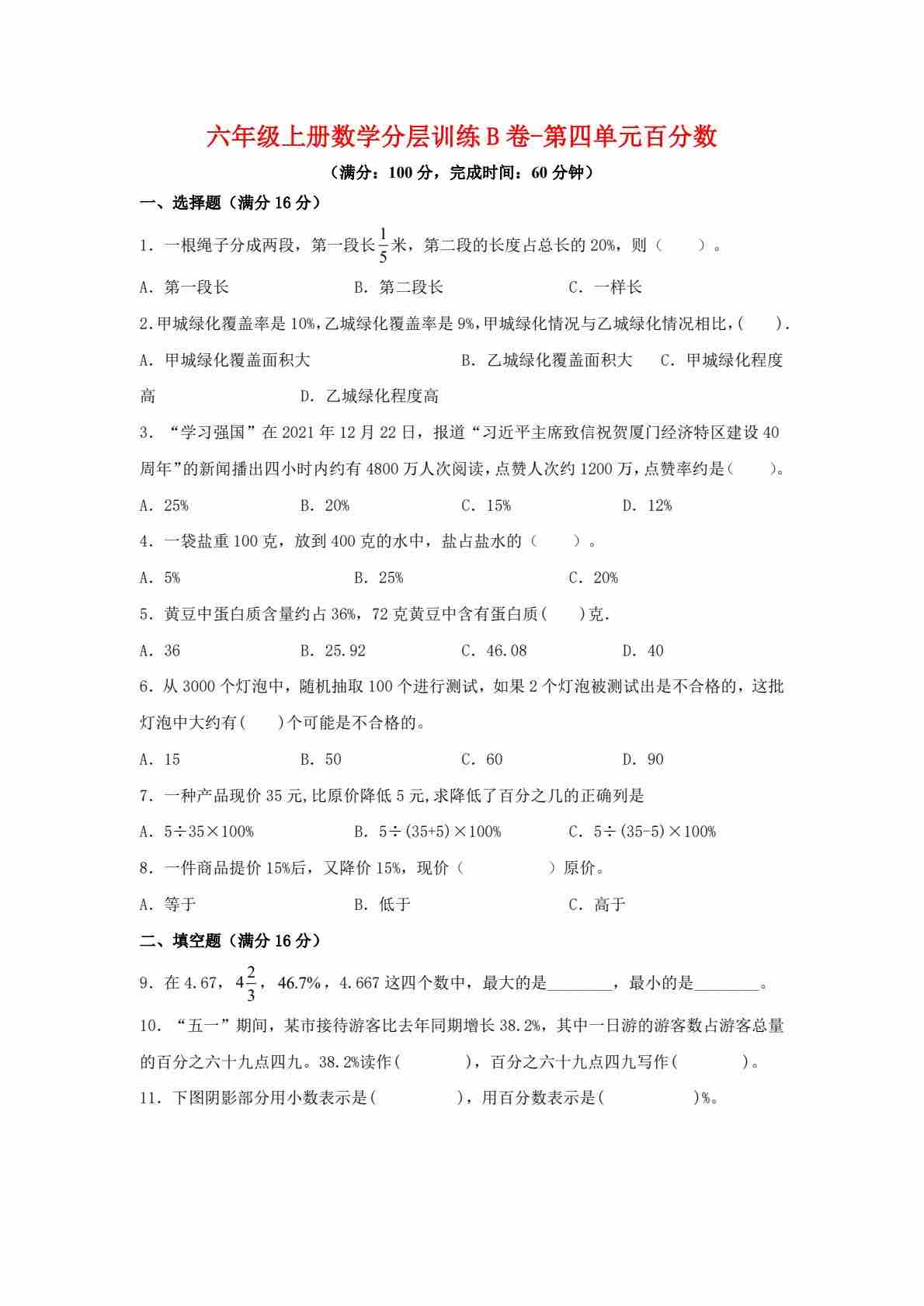 六年级(上)北师版数学第四单元百分数单元测试B卷