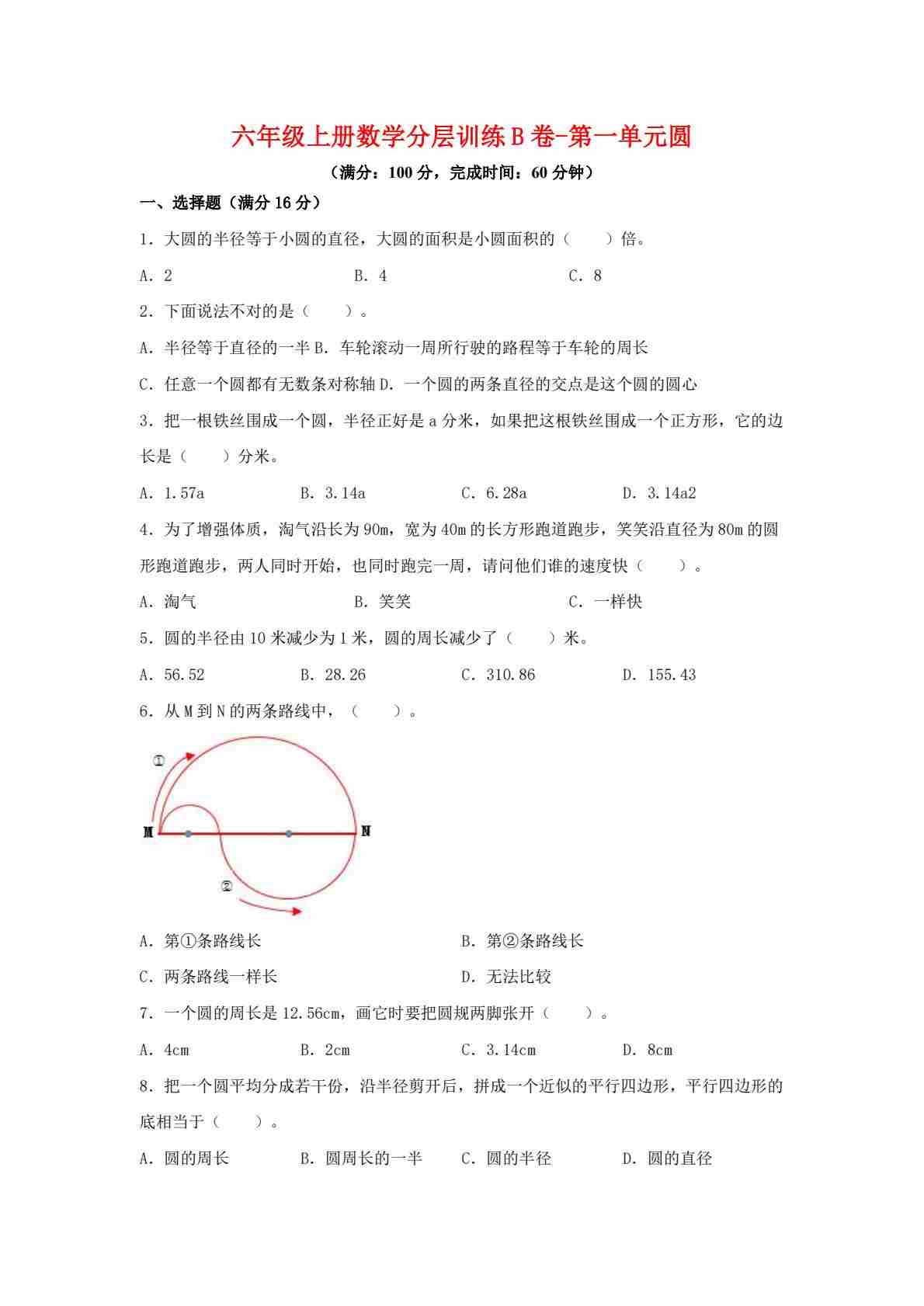 六年级(上)北师版数学第一单元圆单元测试B卷