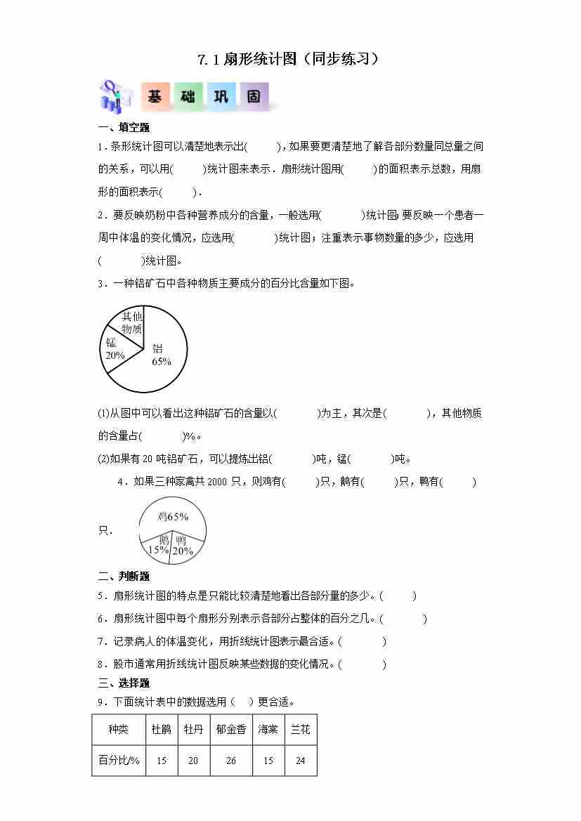 7.1扇形统计图(分层作业)