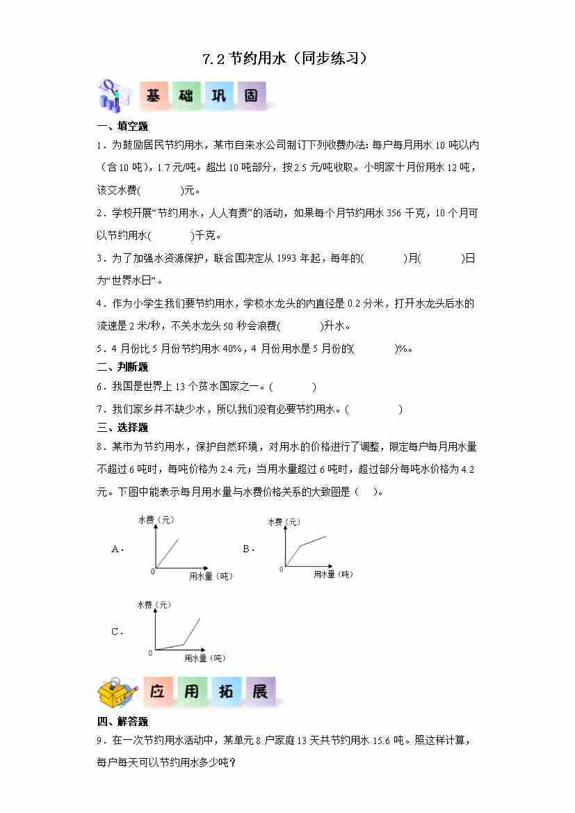 7.2节约用水(分层作业)