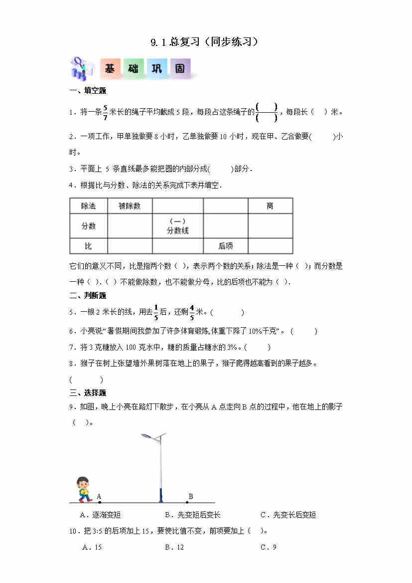 9.1总复习(分层作业)