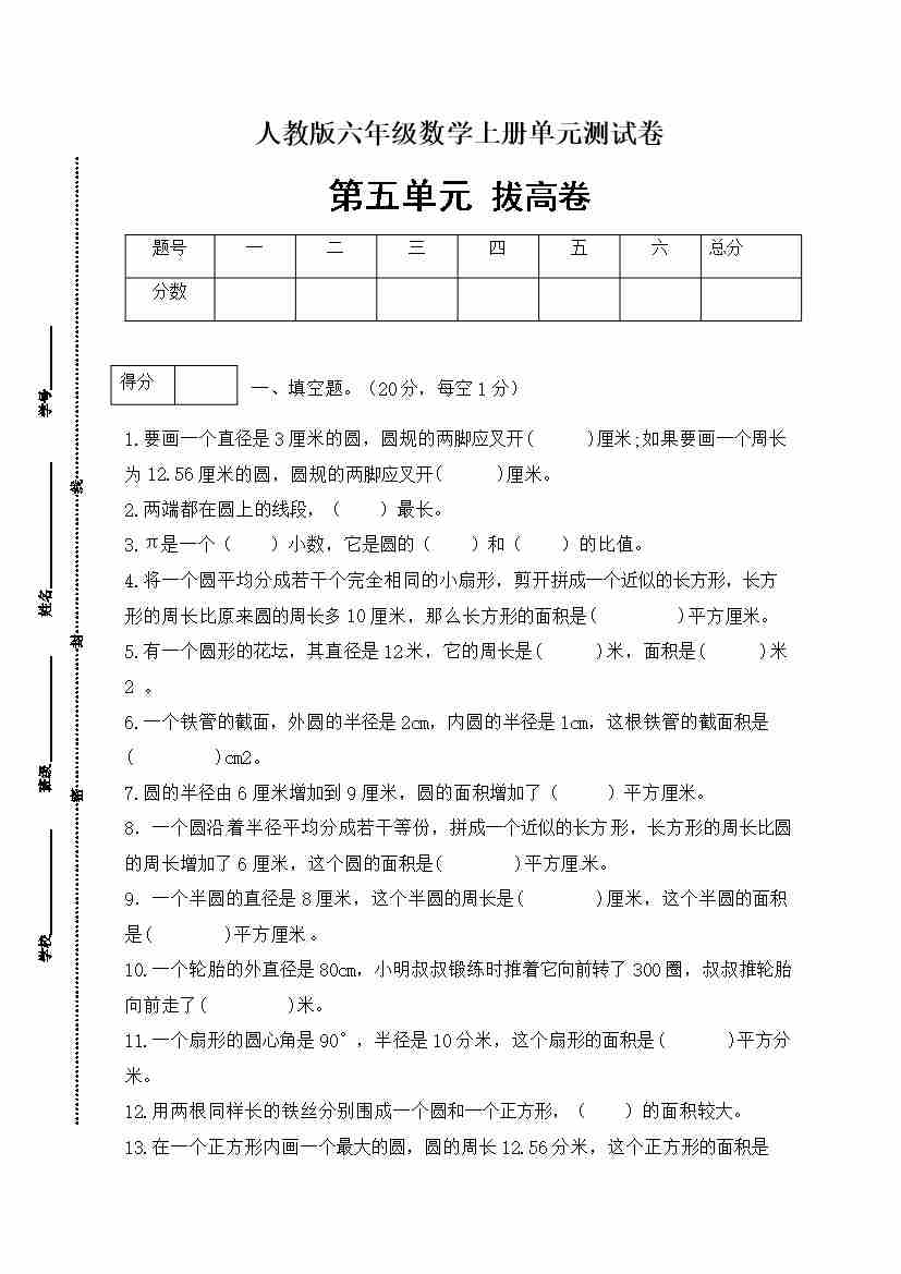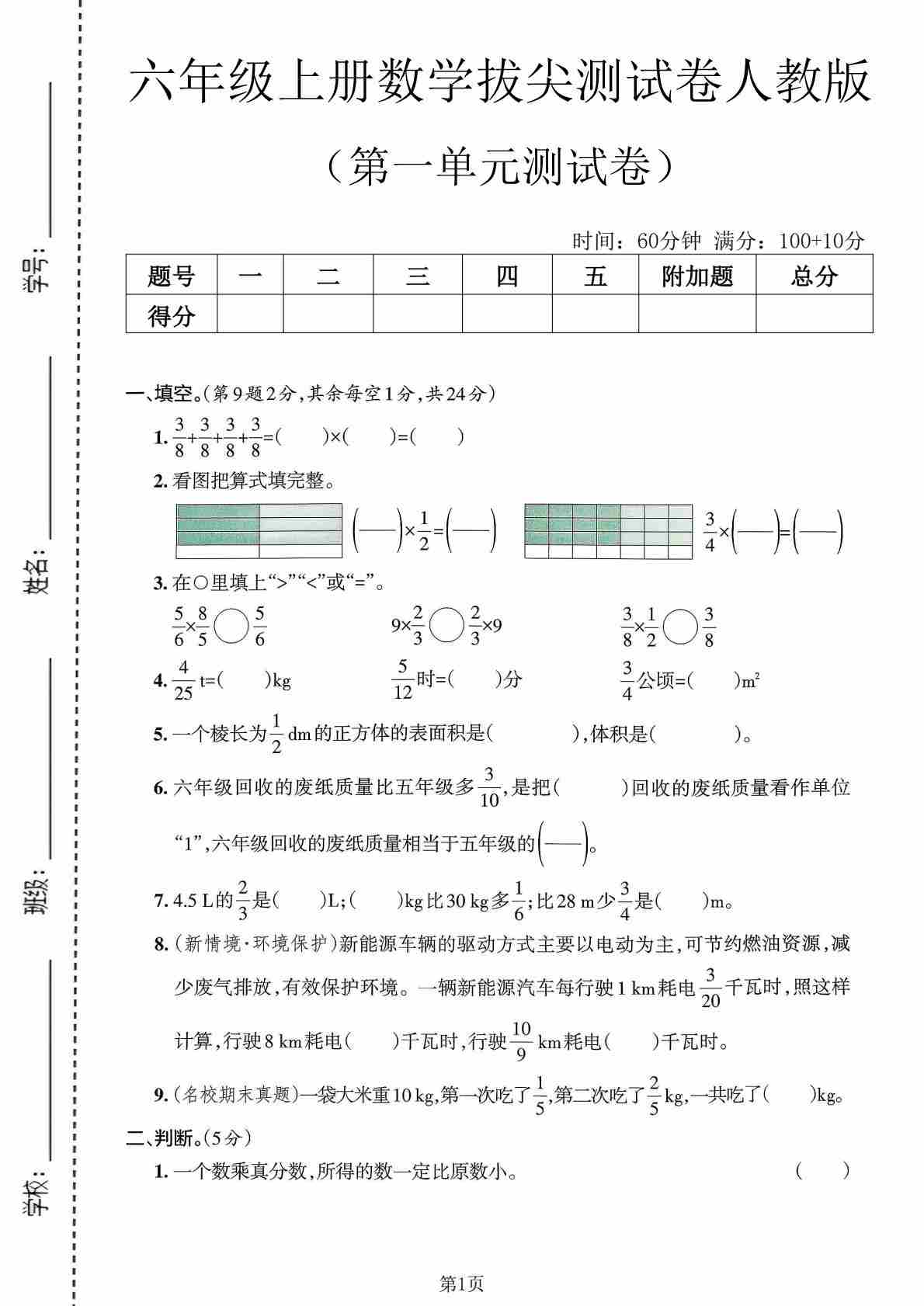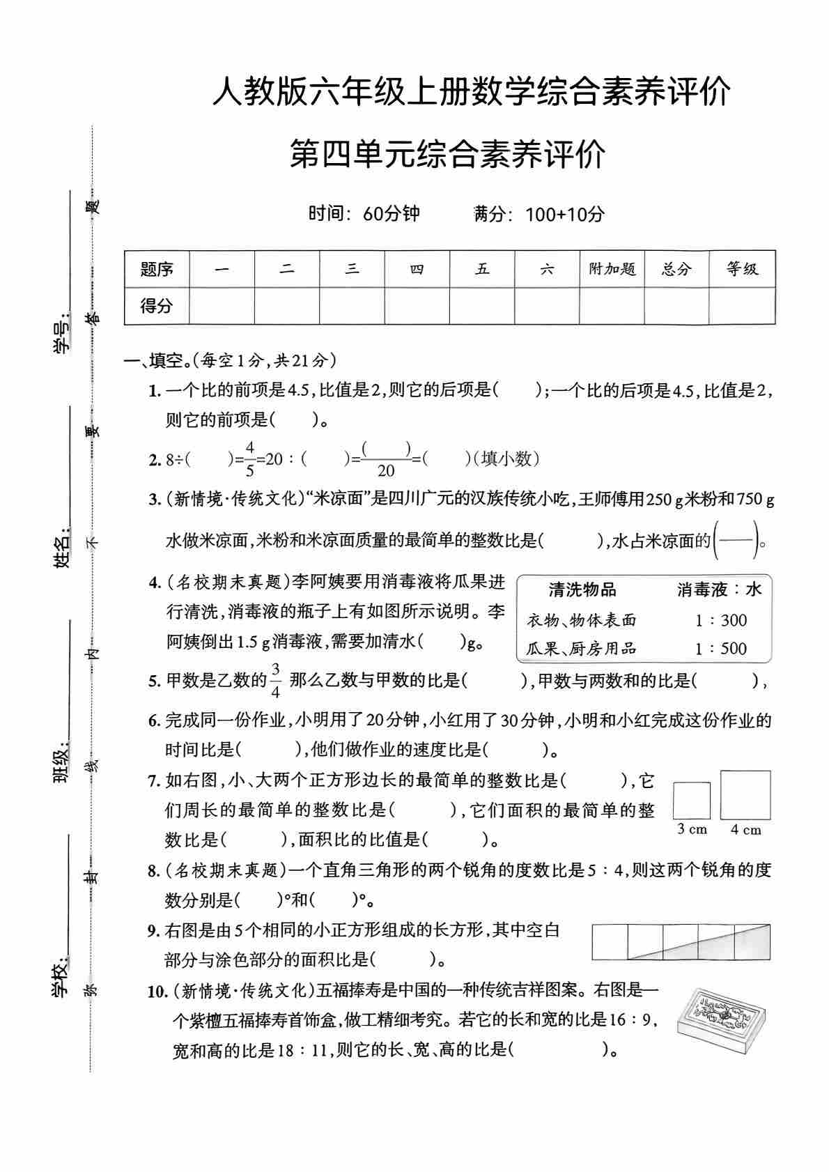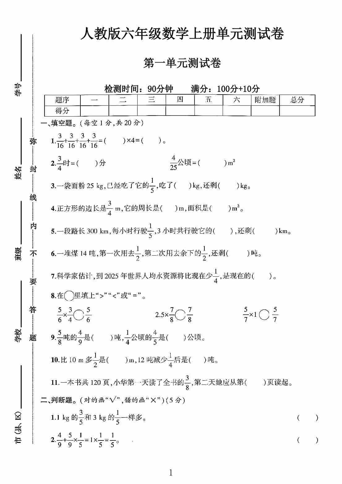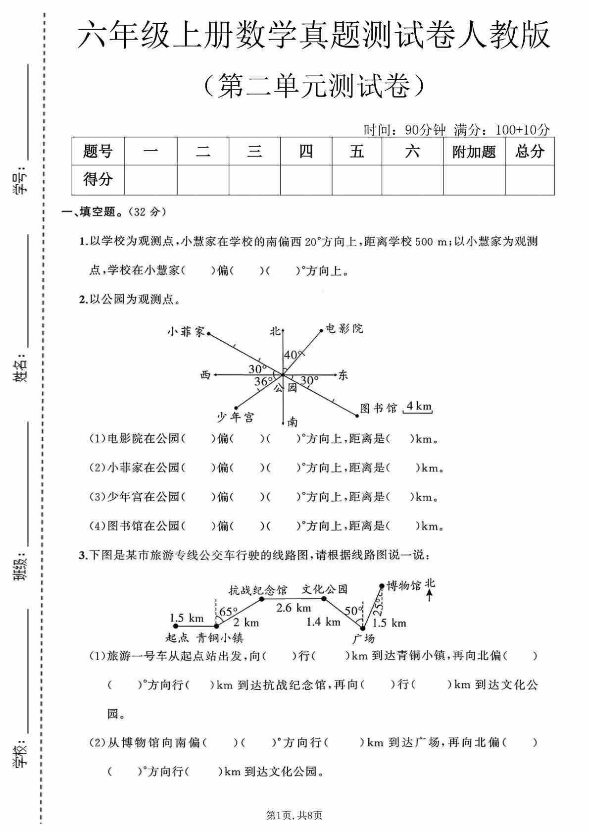 六上人教版数学【期中阶段检测卷(二)(易错篇)(含答案】)