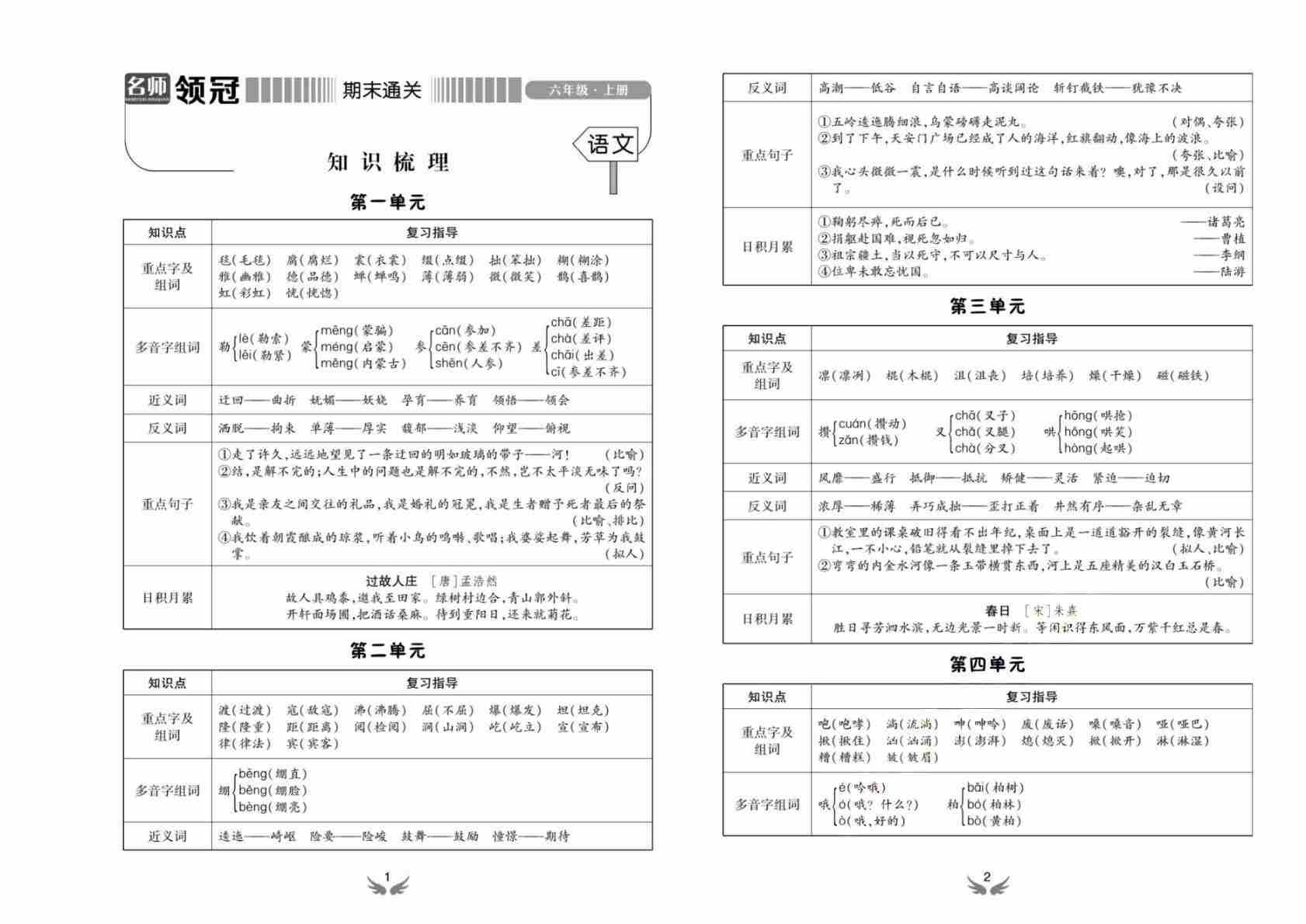 六上语文【1-8单元必背考点满分卷,考试通关必备宝典(共16页)】