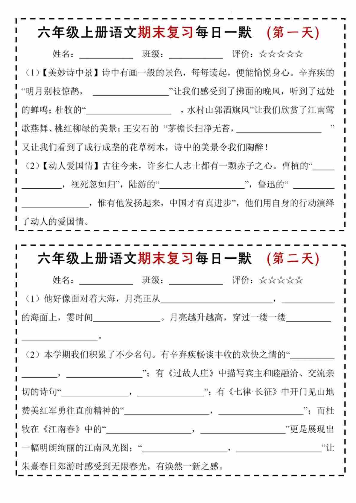 【期末复习每日一默】六上语文
