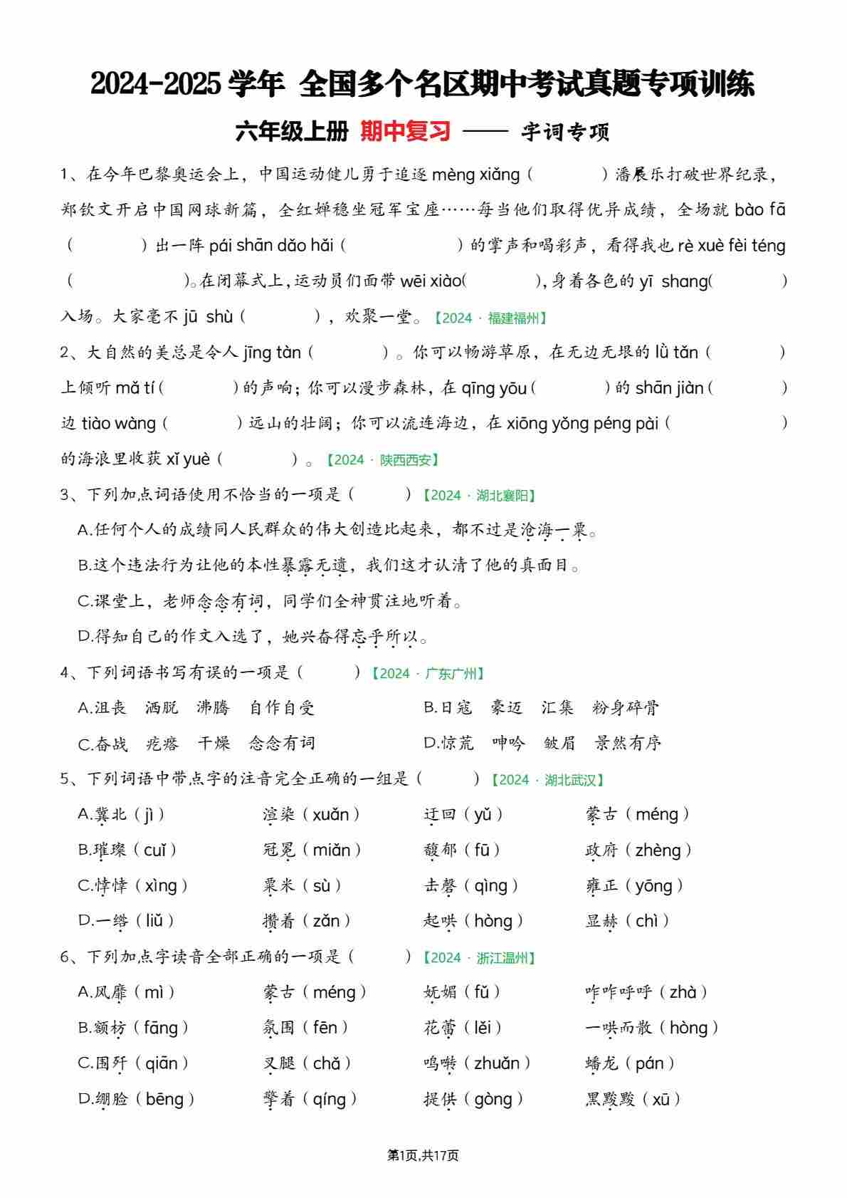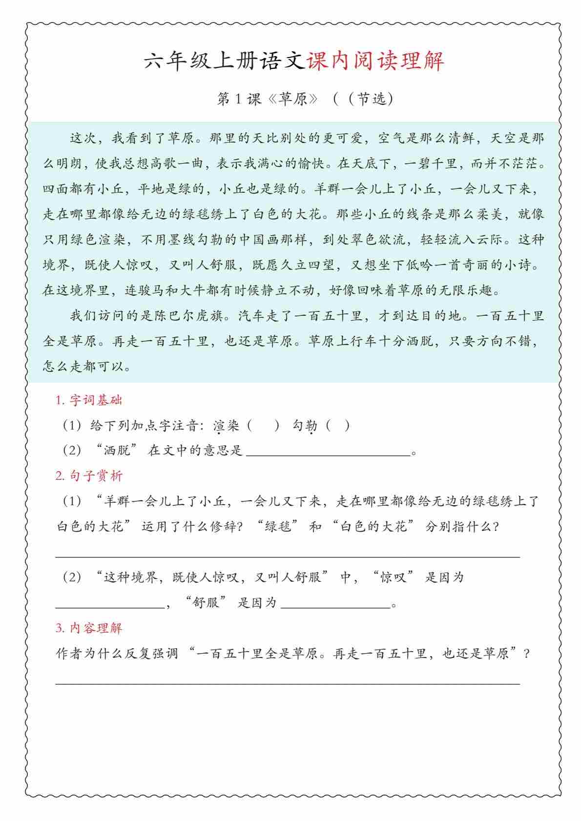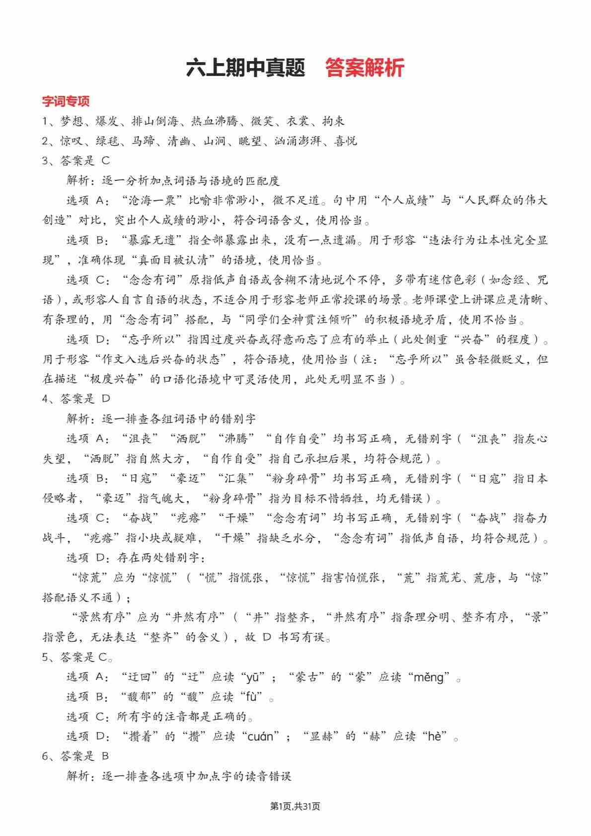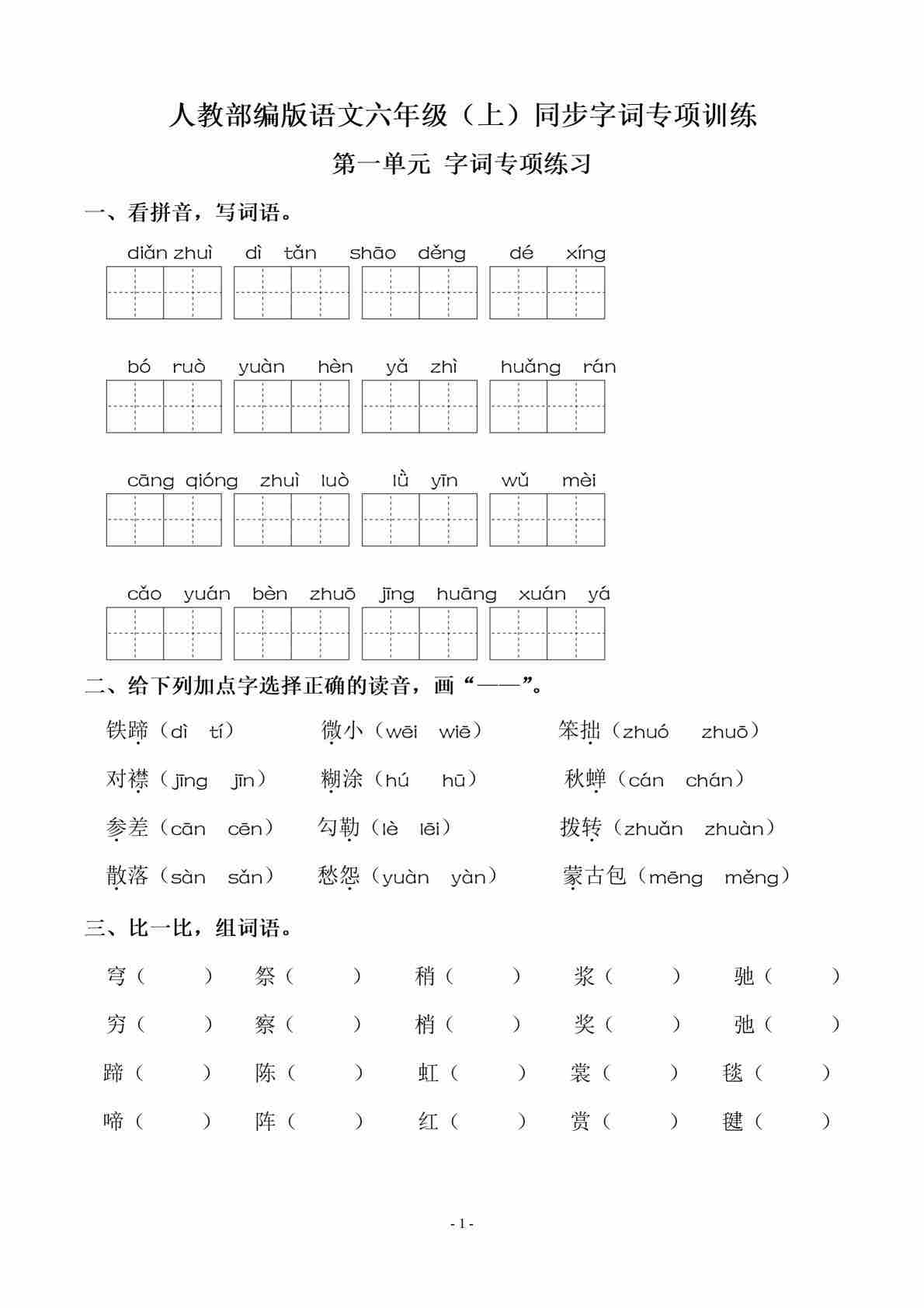 六上语文【期中情境填空·情境默写古诗词日积月累专项(答案版8页)】 (1)