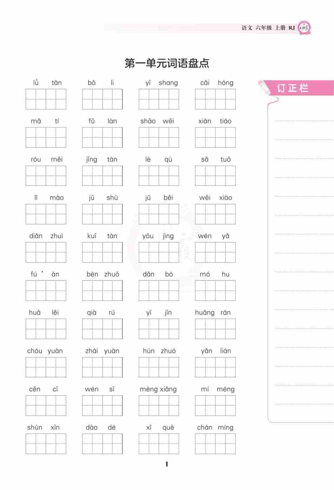 六上语文【期中复习(单元要点背记卡,附拔高练习】