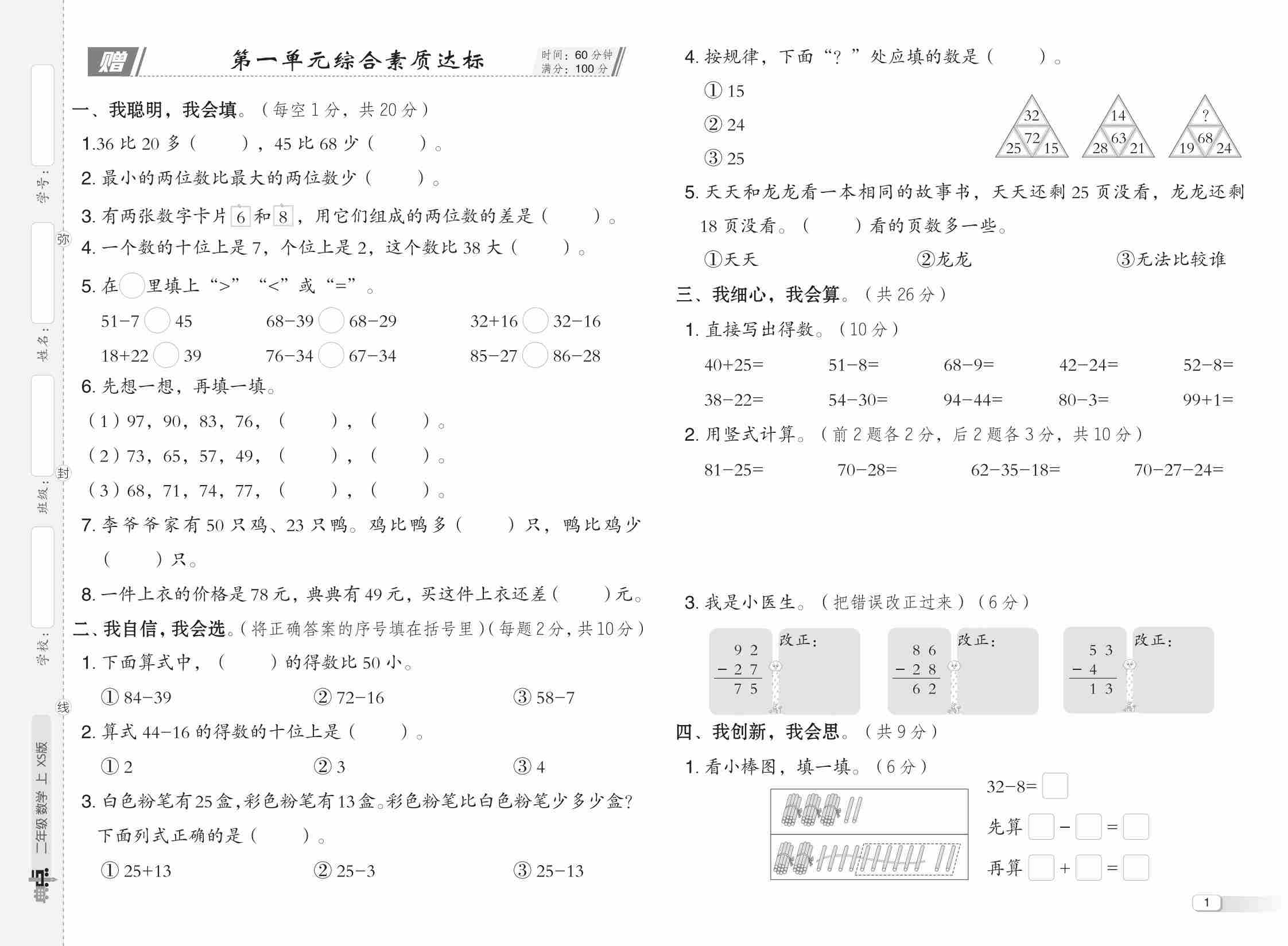 25秋西师版二年级数学上册(XS版)单元测试卷( 好卷)