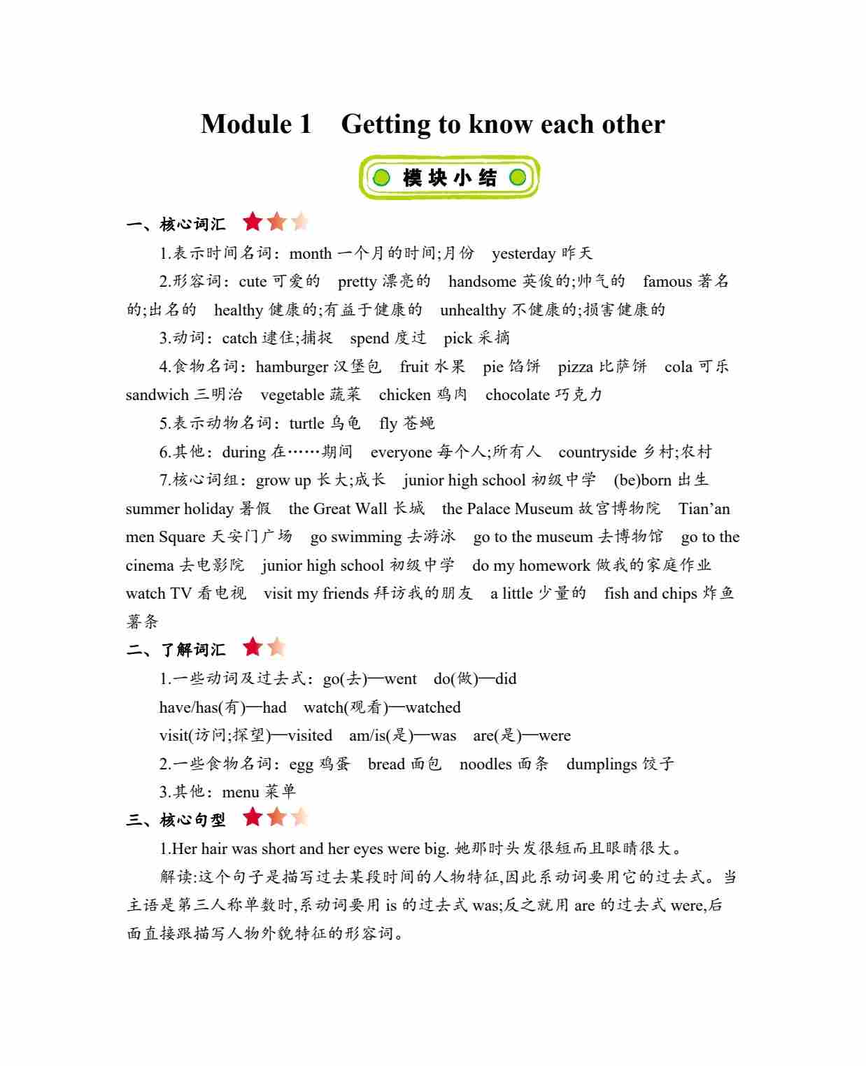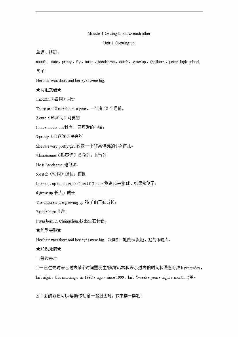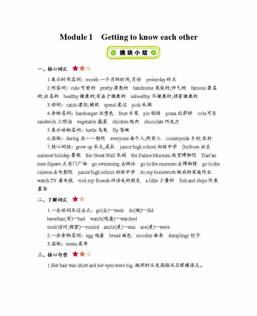 六年级上册英语知识点梳理-Module 1 Getting to know each other