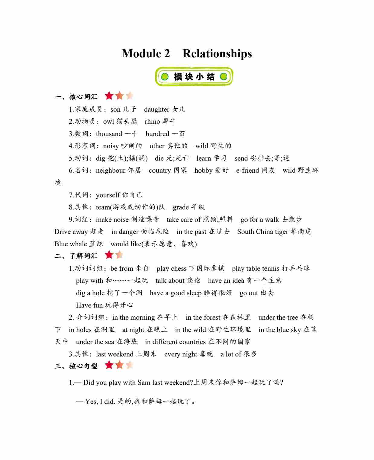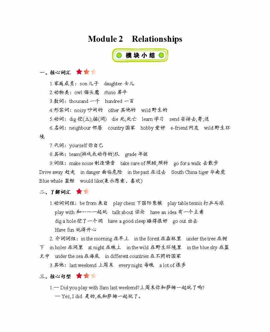 六年级上册英语知识点梳理-Module 2Relationships