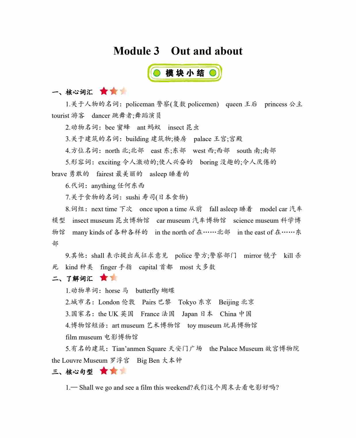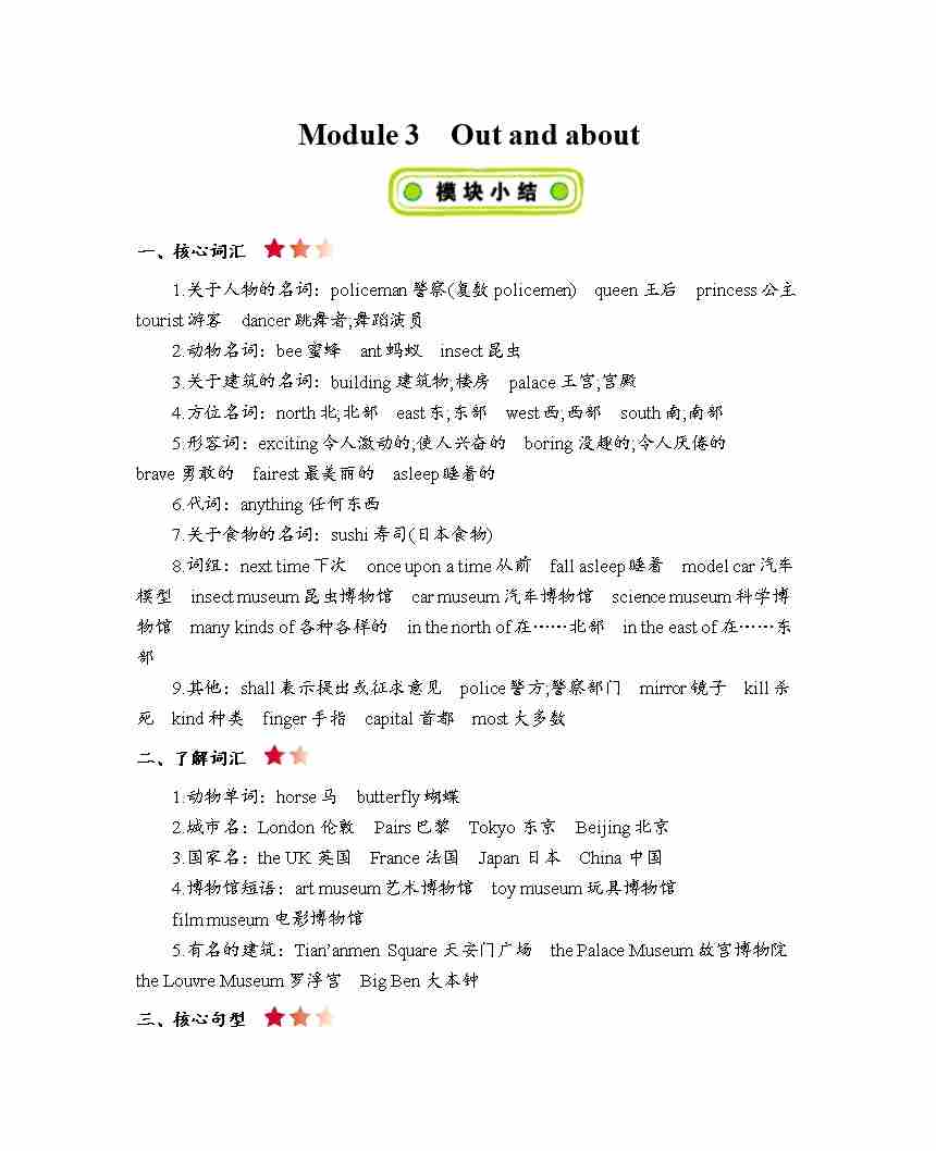 六年级上册英语知识点梳理-Module 3 Out and about