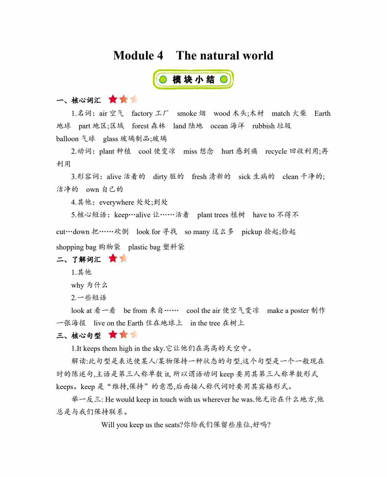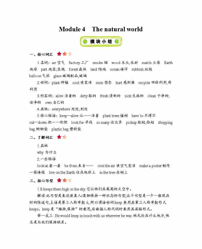 六年级上册英语知识点梳理-Module 4 The natural world