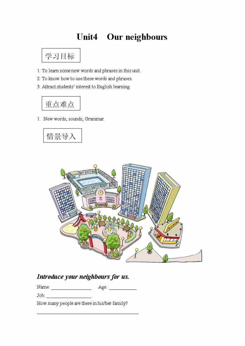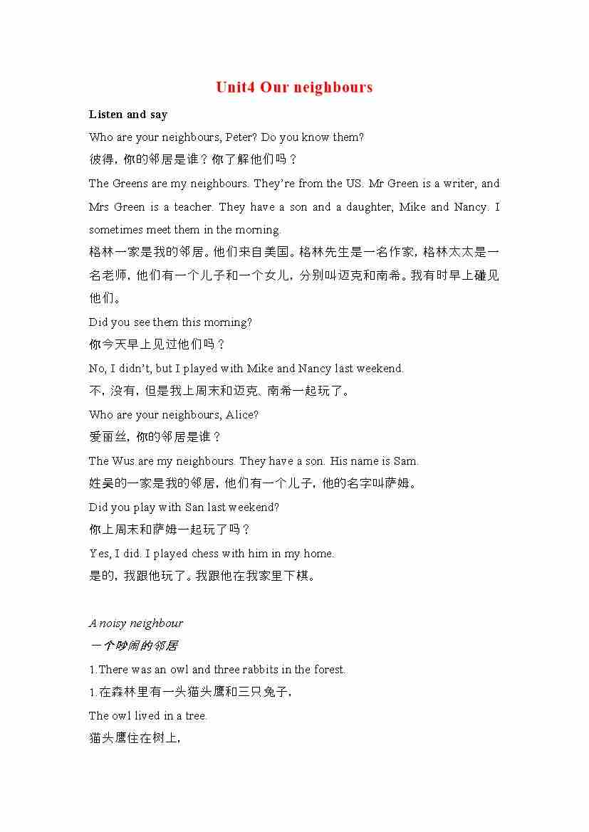 六年级英语上册素材-Unit4 Our neighbours课文翻译 沪教牛津版(深圳用)