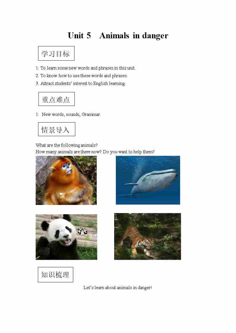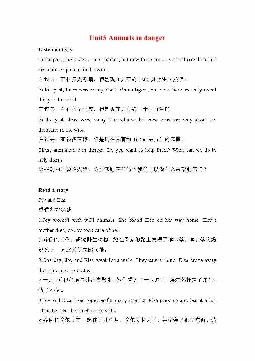 六年级英语上册素材-Unit5 Animals in danger课文翻译 沪教牛津版(深圳用)