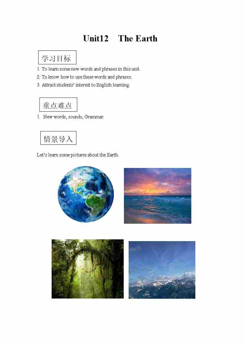 六年级上册英语讲义-Unit12 The earth 知识点精讲 习题练习 巩固提高(有答案) 沪教牛津版