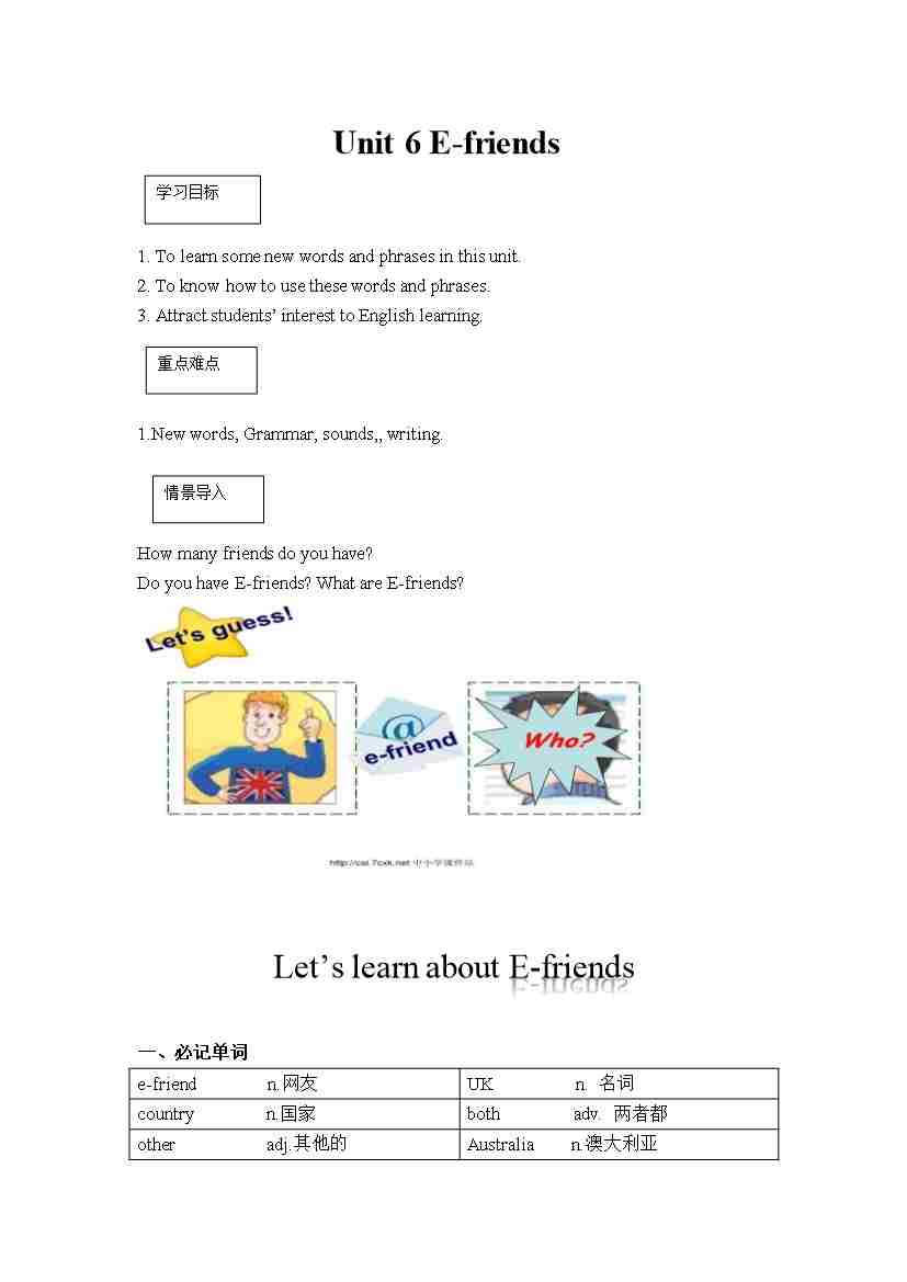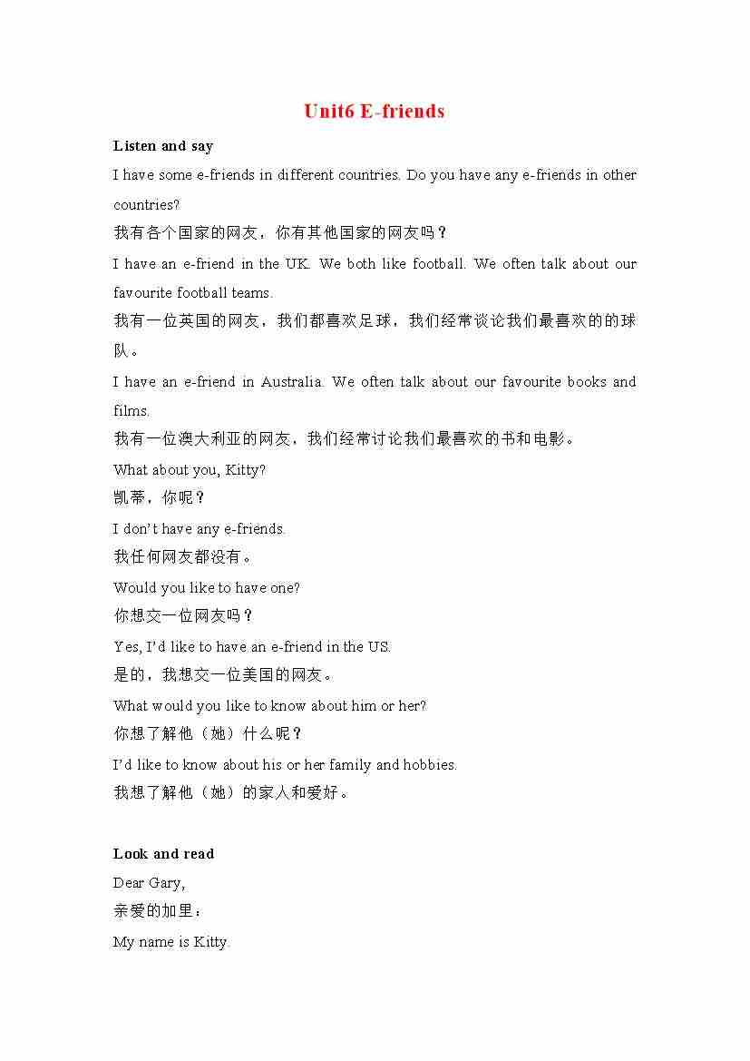 六年级英语上册素材-Unit6 E-friends课文翻译 沪教牛津版(深圳用)