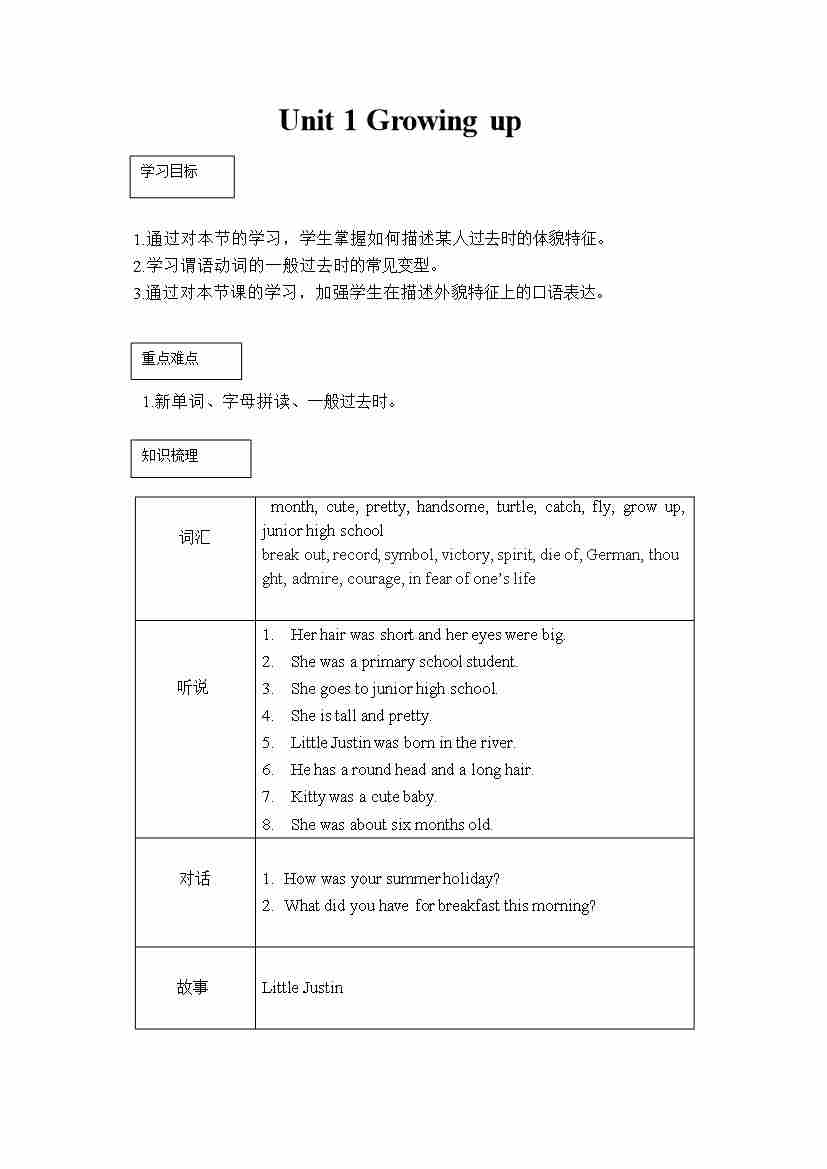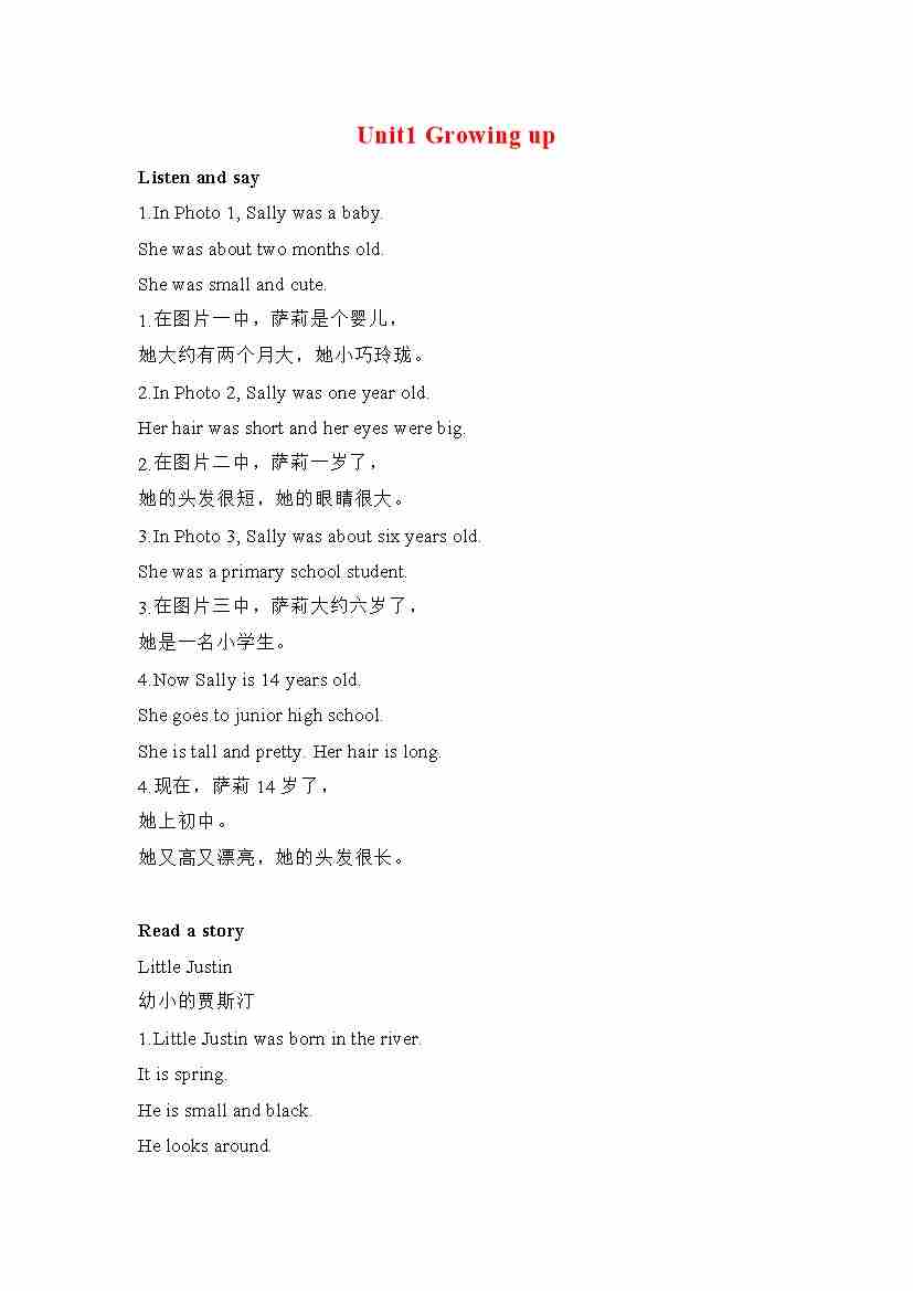 六年级英语上册素材-Unit1 Growing up课文翻译 沪教牛津版(深圳用)