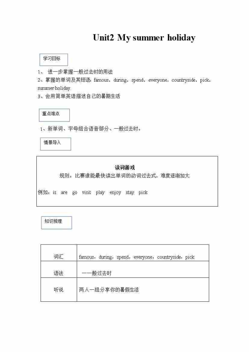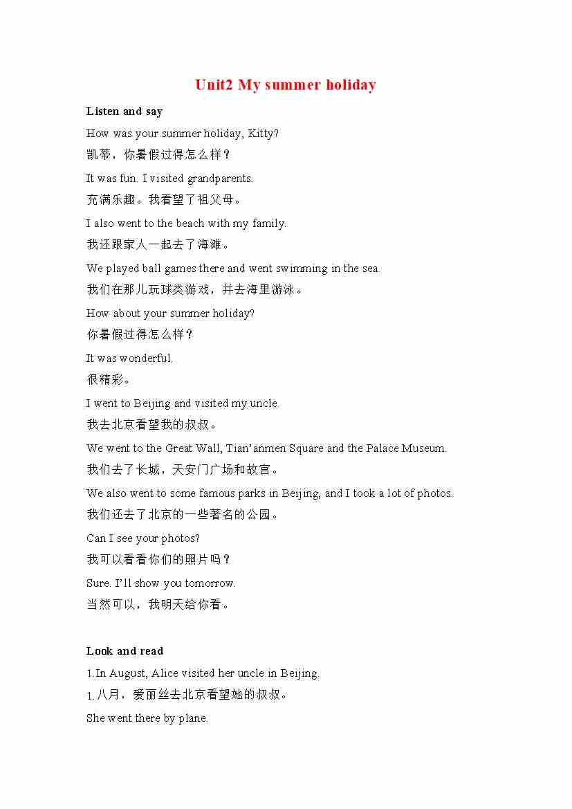 六年级英语上册素材-Unit2 My summer holiday课文翻译 沪教牛津版(深圳用)