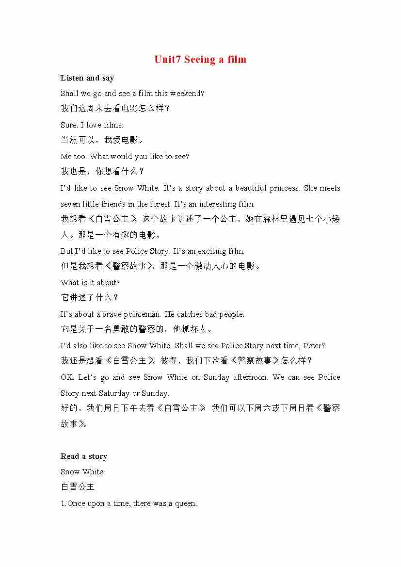 六年级英语上册素材-Unit7 Seeing a film课文翻译 沪教牛津版(深圳用)