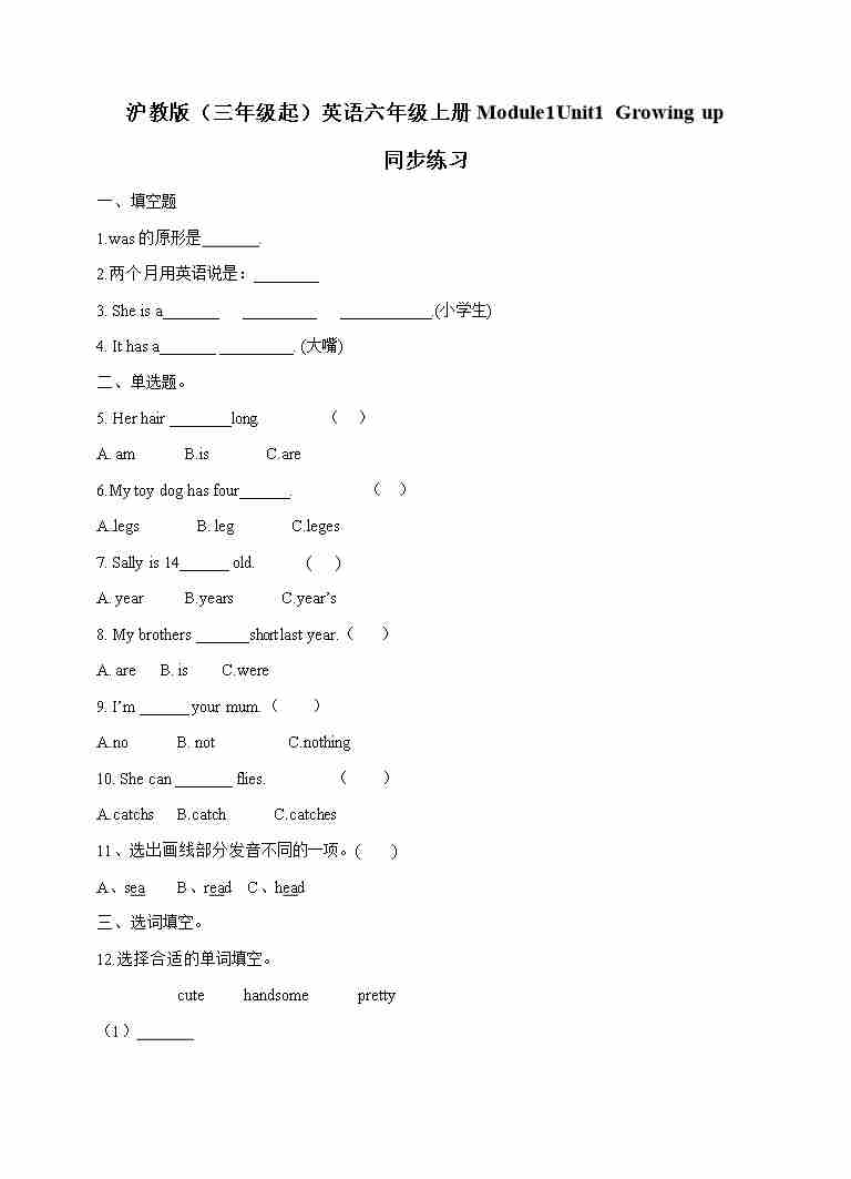 六年级上册英语一课一练- Module1 Unit1 Growing up 牛津上海版(三起)(word版,含答案解析)