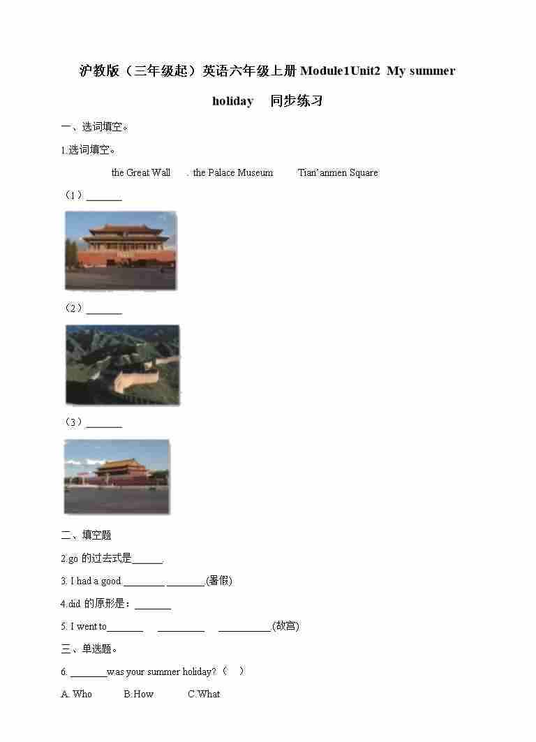 六年级上册英语一课一练- Module1 Unit2 My summer holiday 牛津上海版(三起)(word版,含答案解析)