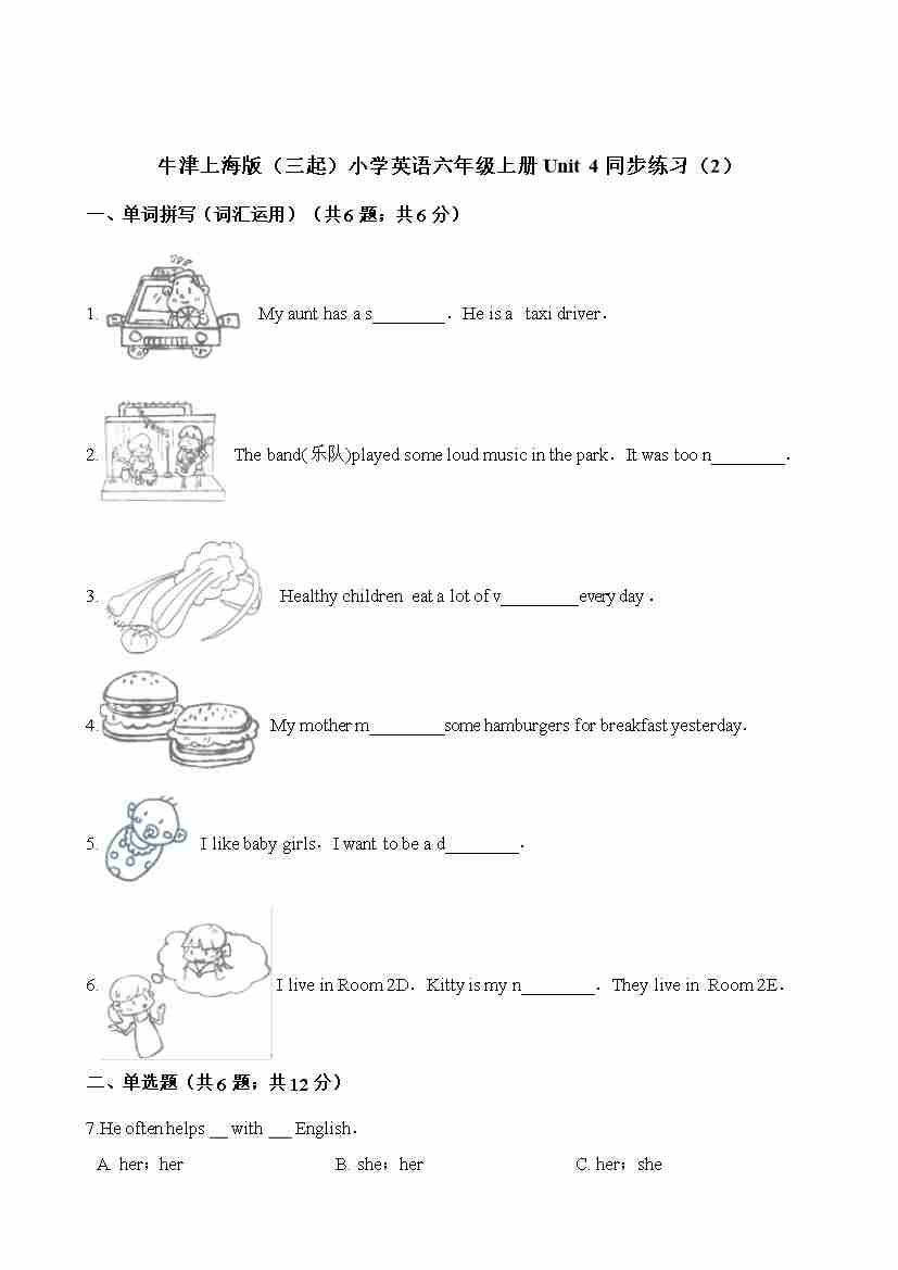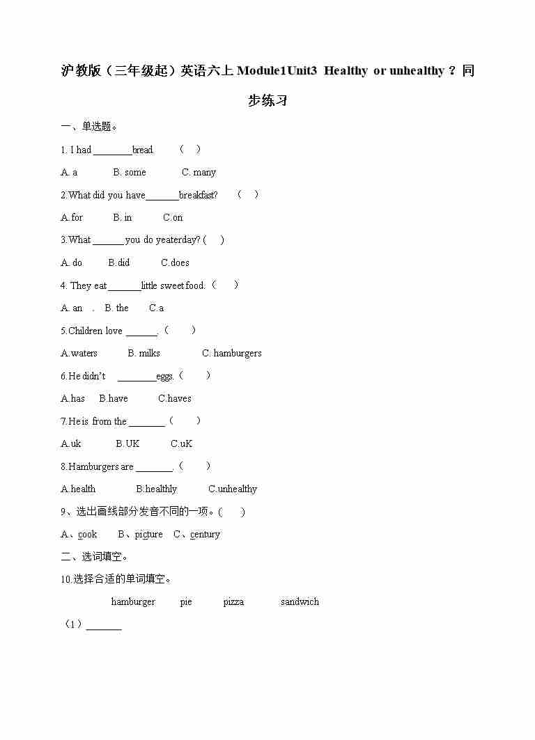 六年级上册英语一课一练- Module1 Unit3 Healthy or unhealthy 牛津上海版(三起)(word版,含答案解析)