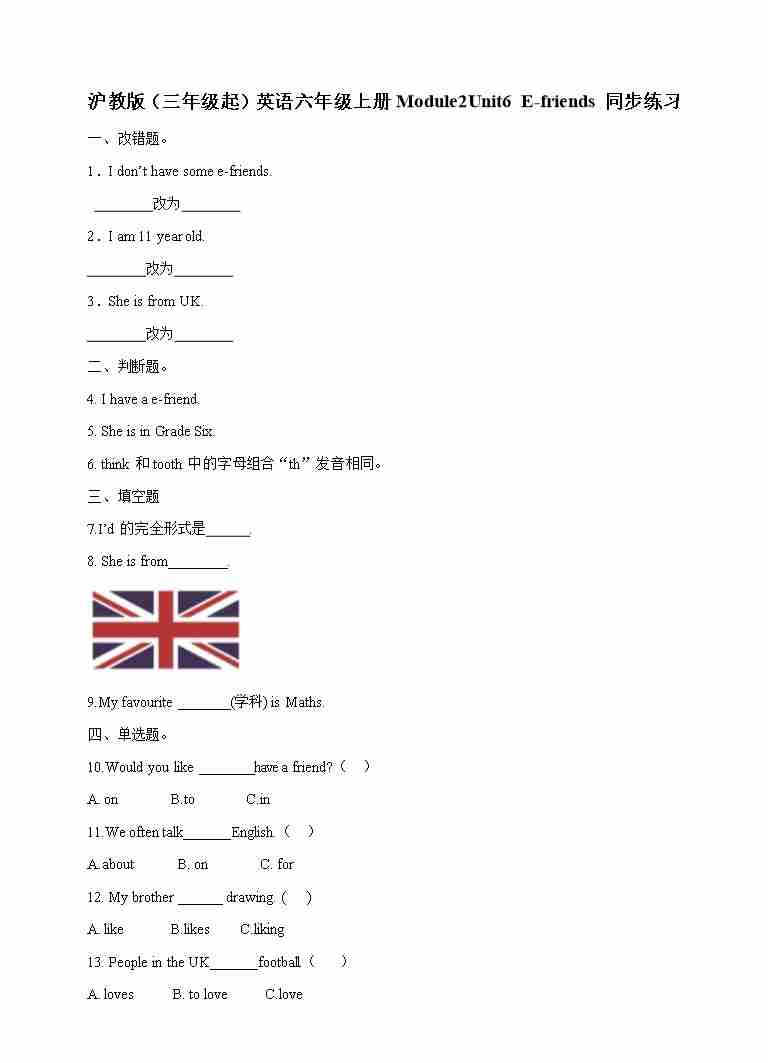 六年级上册英语一课一练- Module2 Unit6 E-friends 牛津上海版(三起)(word版,含答案解析)