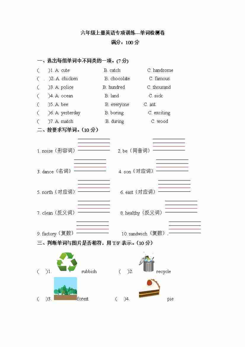 六年级上册英语期末专项训练---单词 上海牛津版(三起)(word版,含答案)