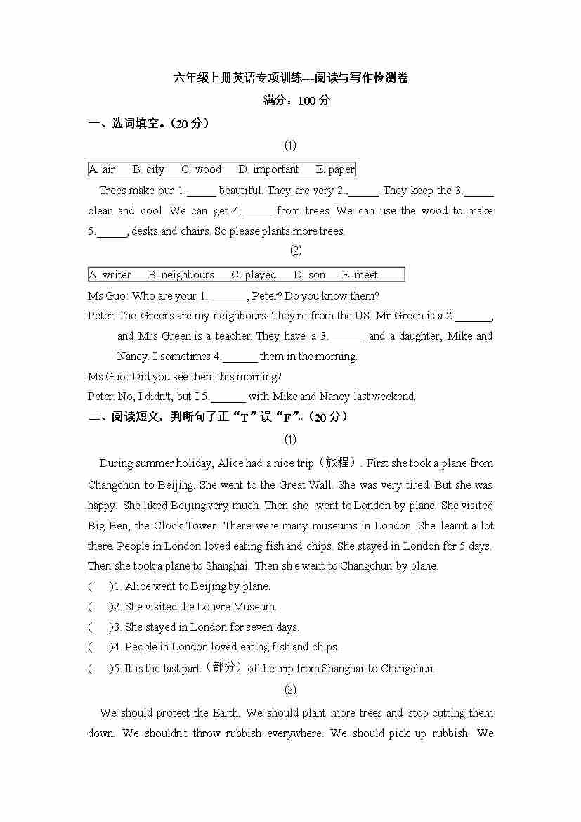 六年级上册英语期末专项训练---阅读与写作 上海牛津版(三起)(word版,含答案)