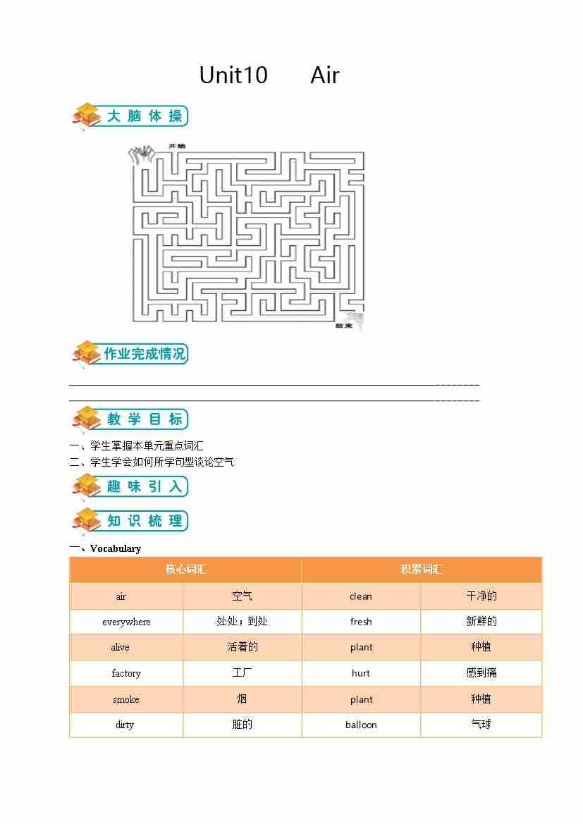 广东省深圳市小学英语沪教牛津版六年级上册Unit10Air讲义