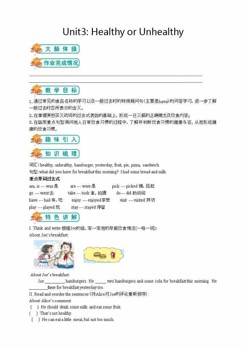 广东省深圳市小学英语沪教牛津版六年级上册Unit3Healthyorunhealthy讲义