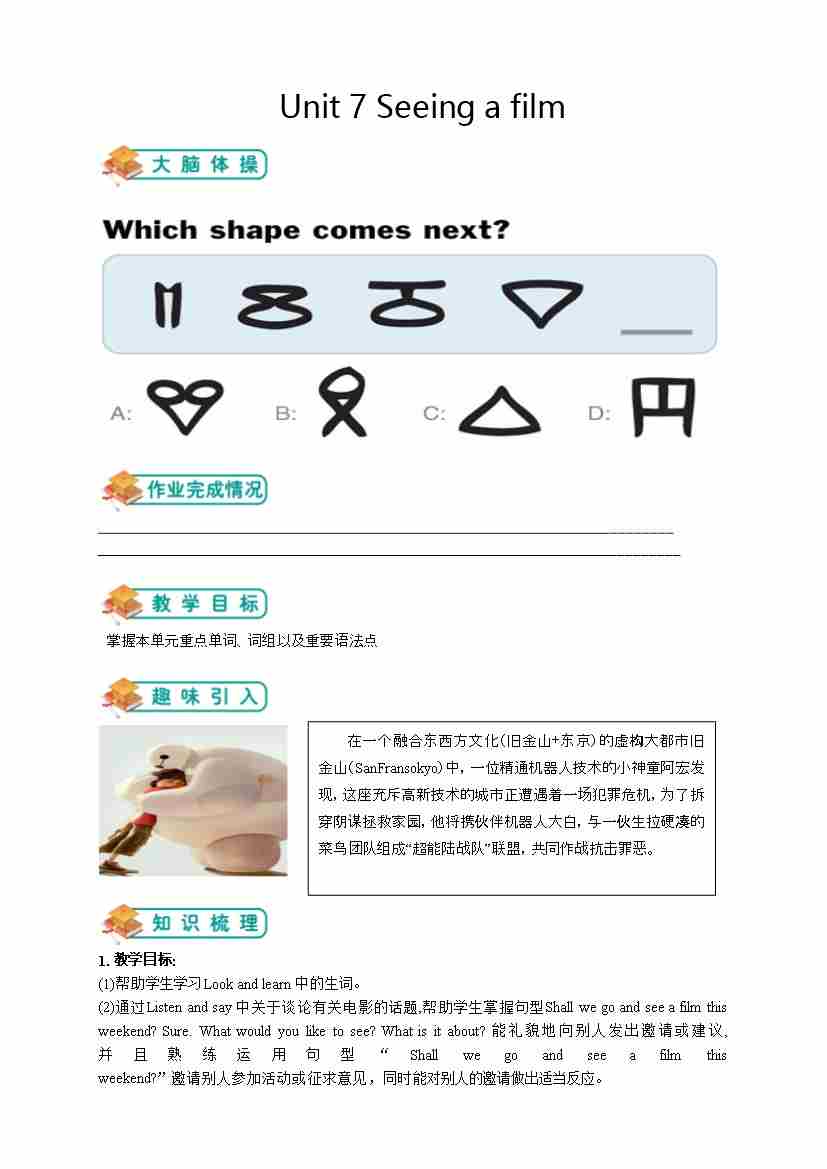 广东省深圳市小学英语沪教牛津版六年级上册Unit7:Seeingafilm讲义