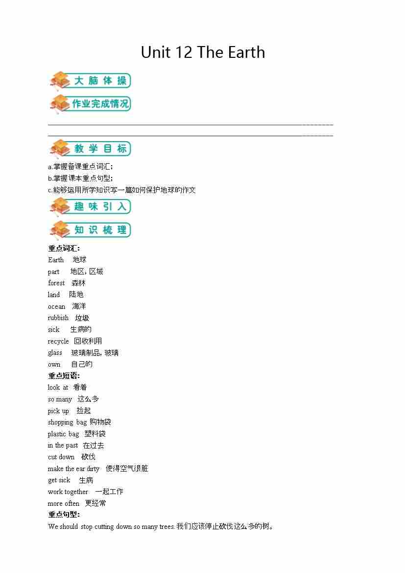 广东省深圳市小学英语沪教牛津版六年级上册unit12TheEarth讲义