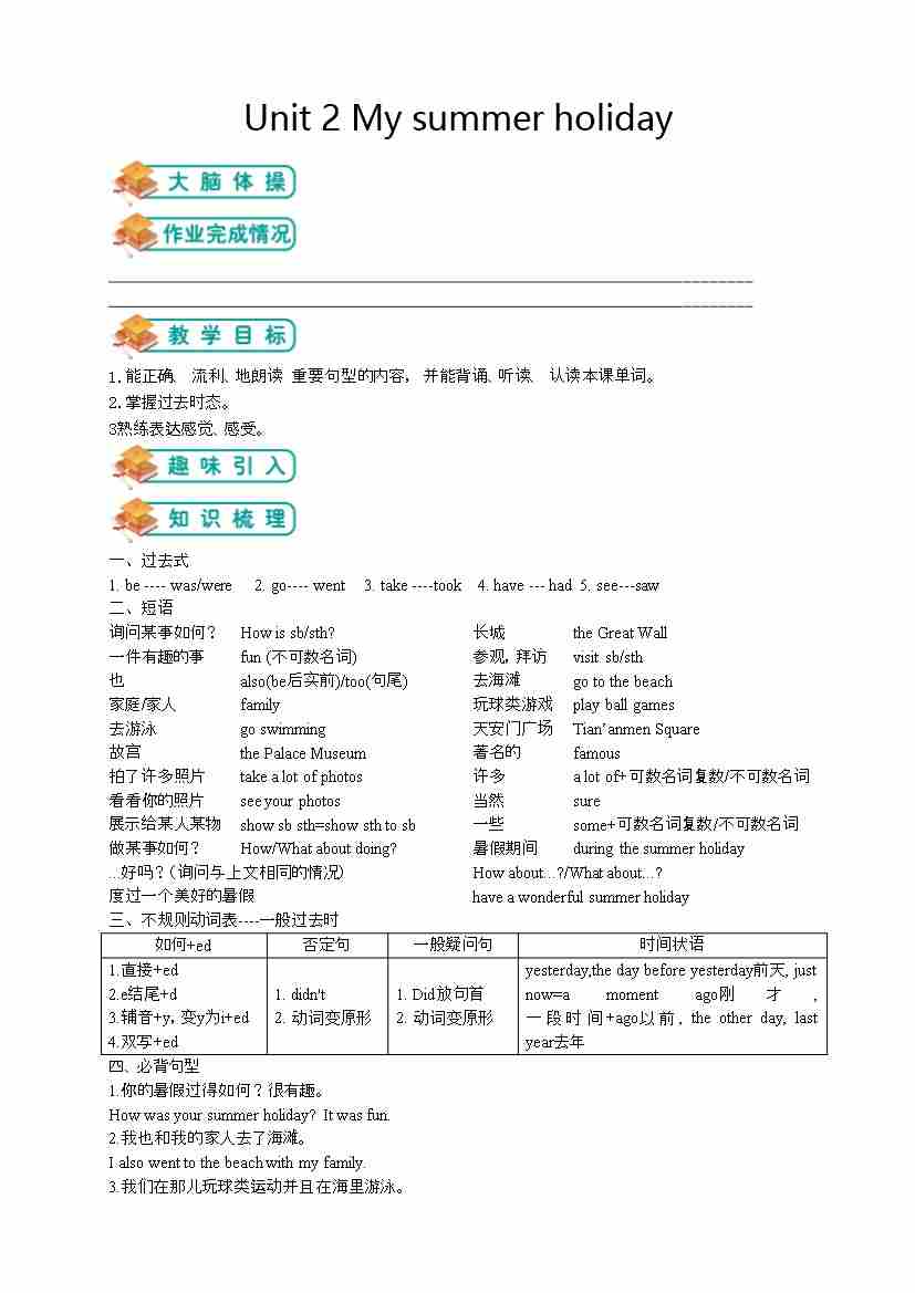 广东省深圳市小学英语沪教牛津版六年级上册unit2Mysummerholiday讲义