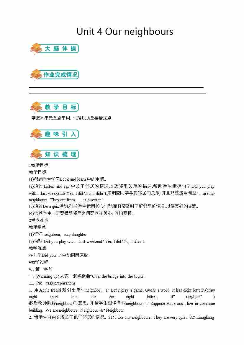 广东省深圳市小学英语沪教牛津版六年级上册unit4Ourneighbours讲义