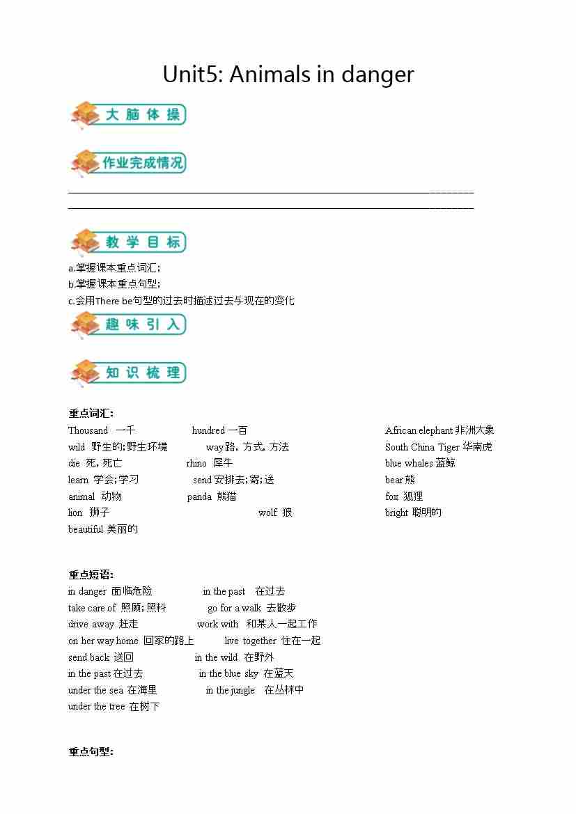 广东省深圳市小学英语沪教牛津版六年级上册unit5Animalsindanger讲义