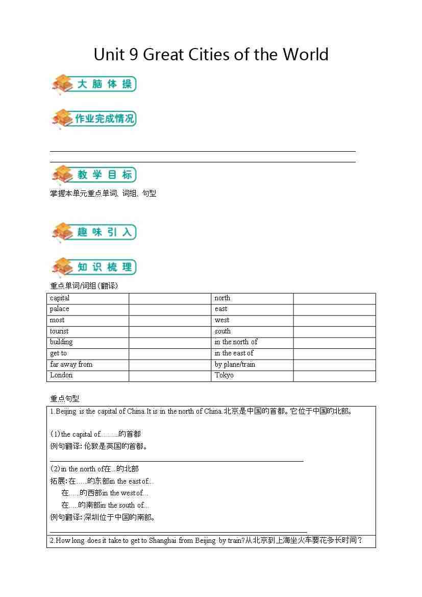 广东省深圳市小学英语沪教牛津版六年级上册unit9:GreatCitiesoftheworld讲义