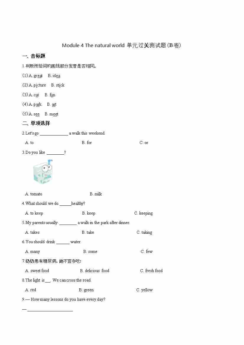 第四单元过关测试(B卷) -Module 4 The natural world 牛津上海版(三起)(word版,含答案解析)
