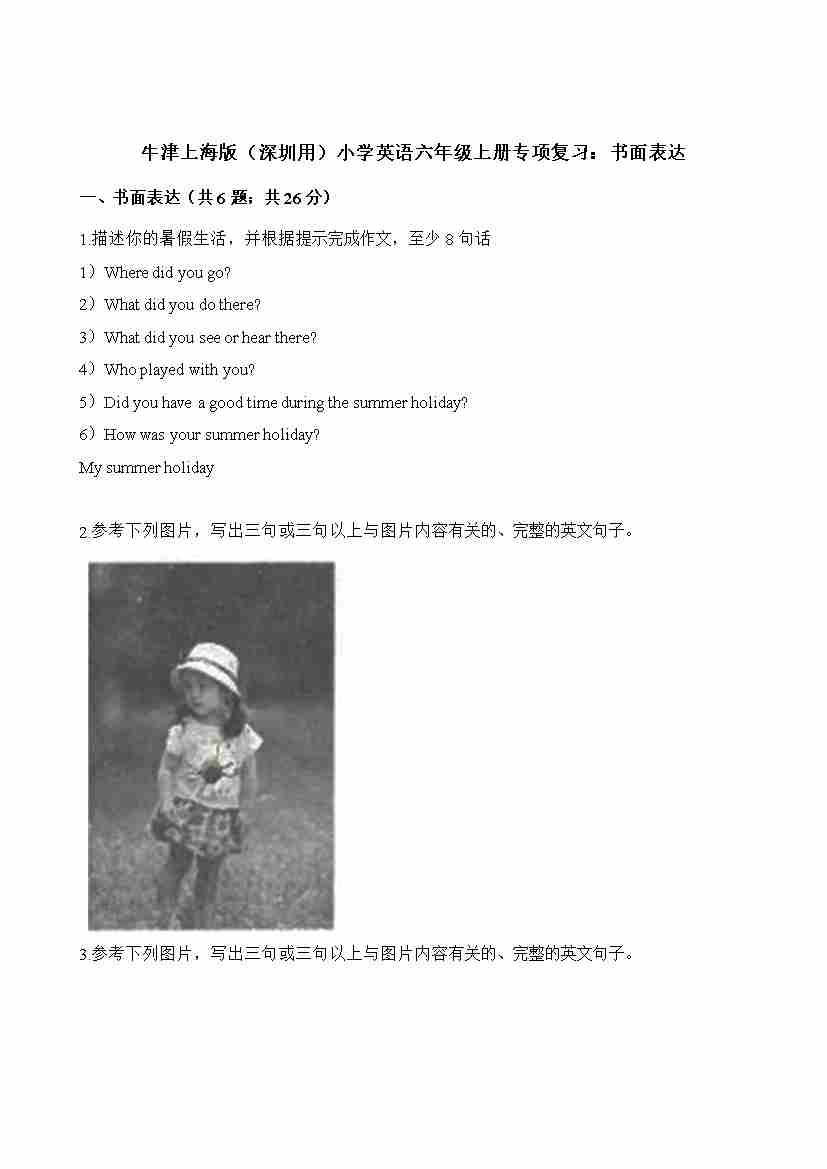 六年级上册英语试题-专项复习:书面表达 牛津上海版(三起)(含解析)