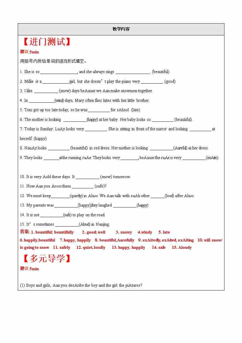 六年级英语寒假讲义第4讲 形容词和副词专题 (学生版)译林版(三起)