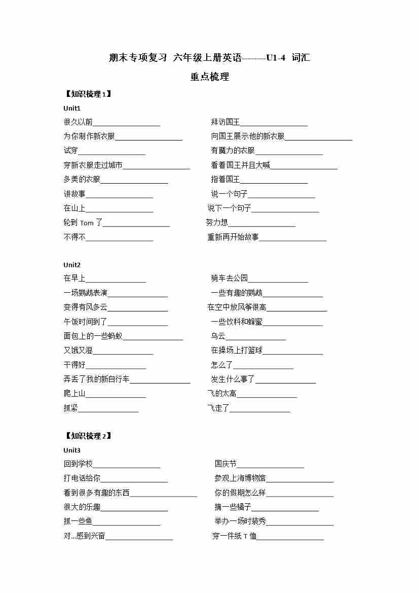 专题01 U1-4词汇-六年级英语上册寒假专项提升(学生版)(译林版三起)
