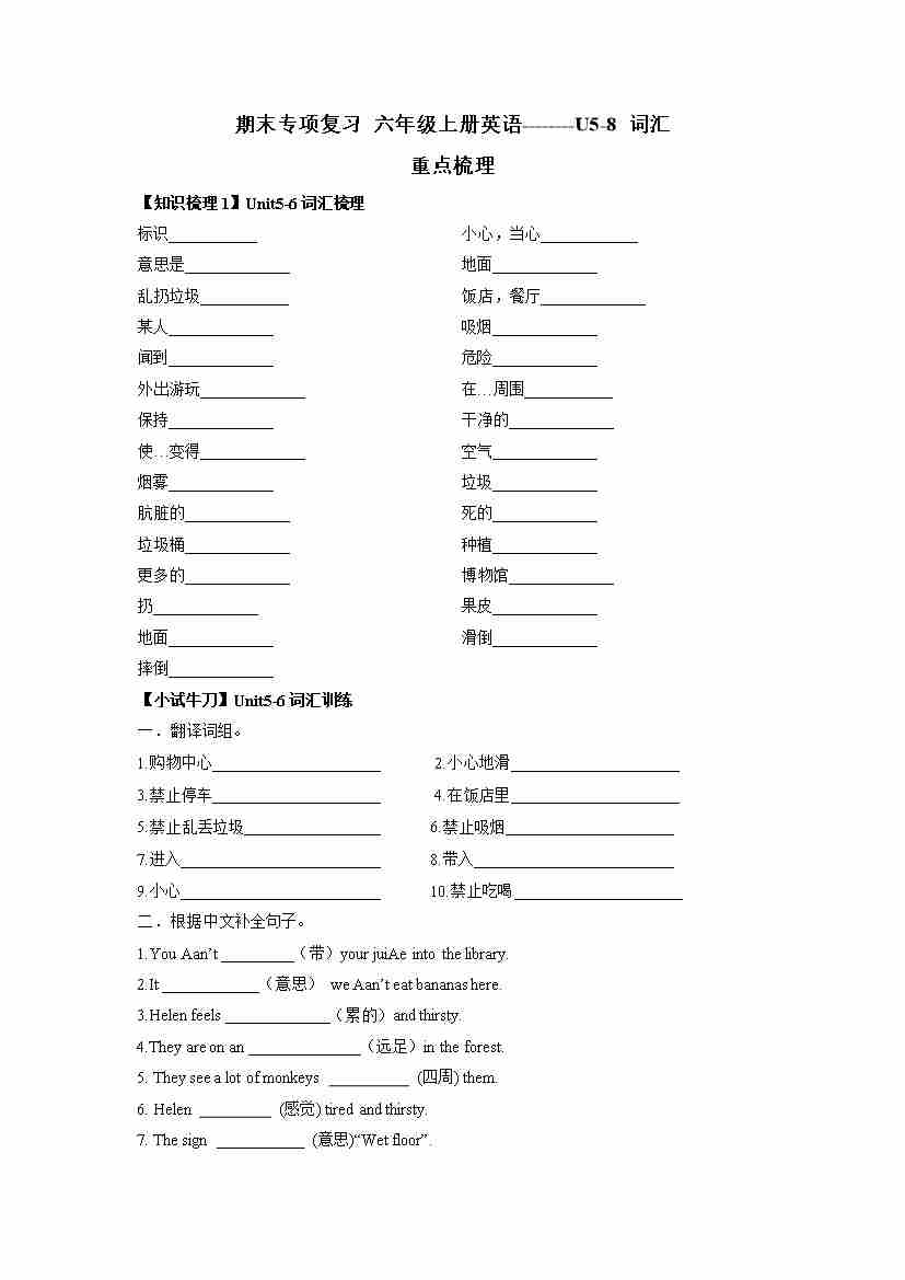 专题02 U5-8词汇-六年级英语上册寒假专项提升(学生版)(译林版三起)