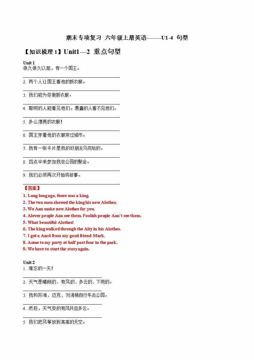 专题03 U1-4句型-六年级英语上册寒假专项提升(教师版)(译林版三起)