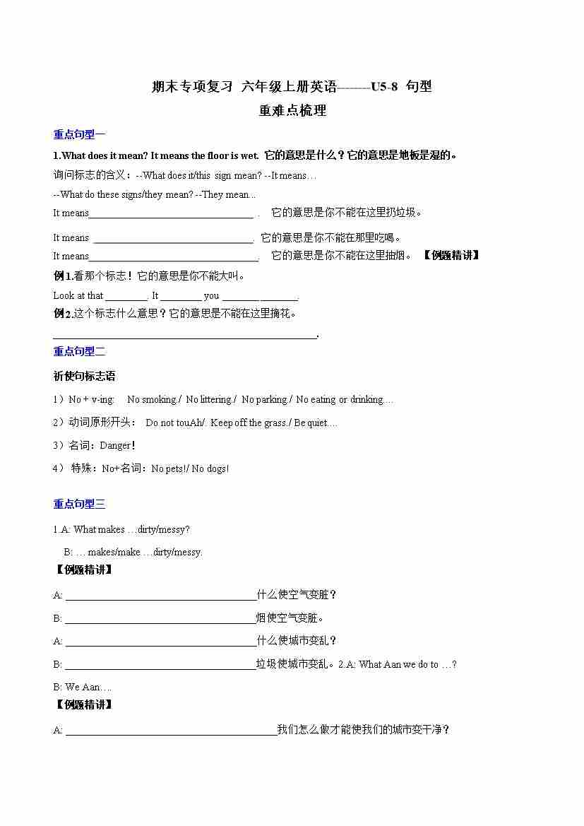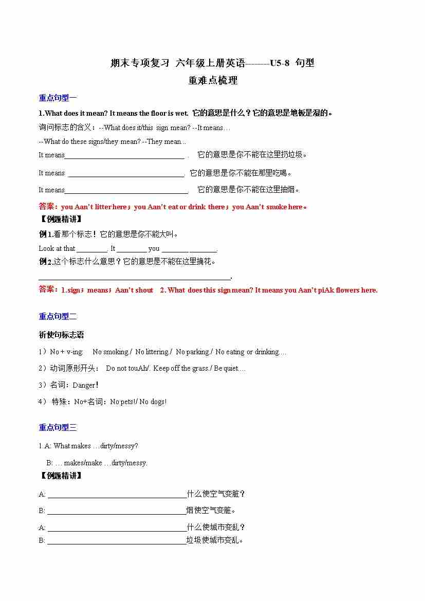 专题04 U5-8句型-六年级英语上册寒假专项提升(教师版)(译林版三起)