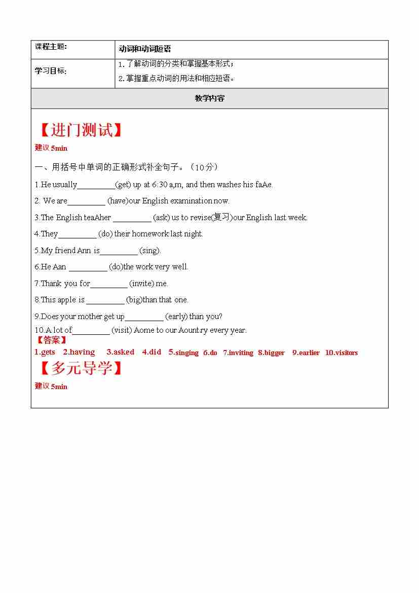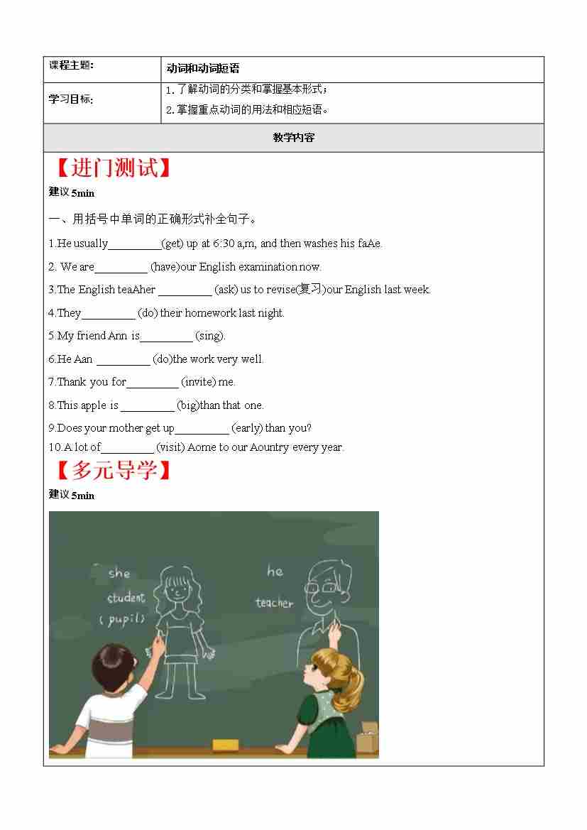六年级英语寒假讲义第6讲 动词和动词短语 (教师版)译林版(三起)