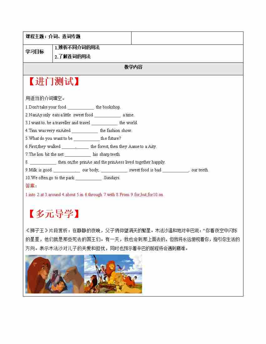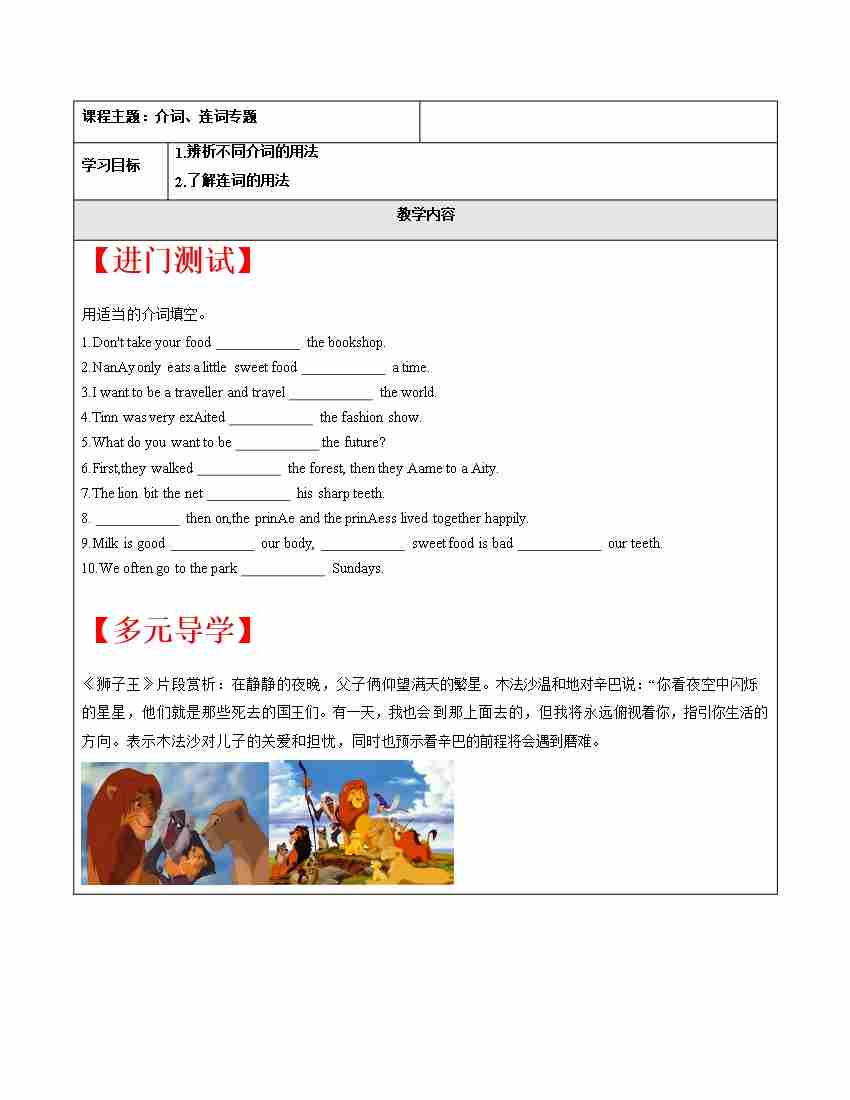 六年级英语寒假讲义第7讲 连词介词专题 (教师版)译林版(三起)