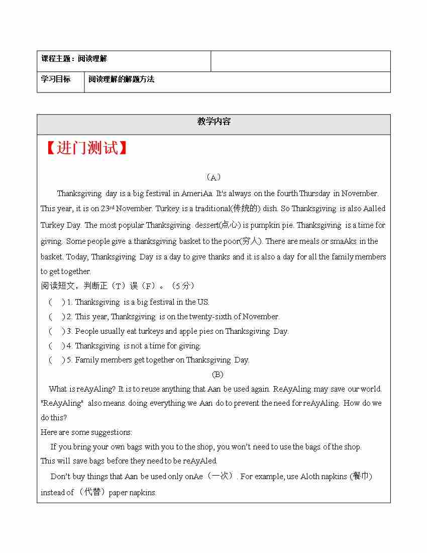 六年级英语寒假讲义第8讲 阅读理解专题 (教师版)译林版(三起)