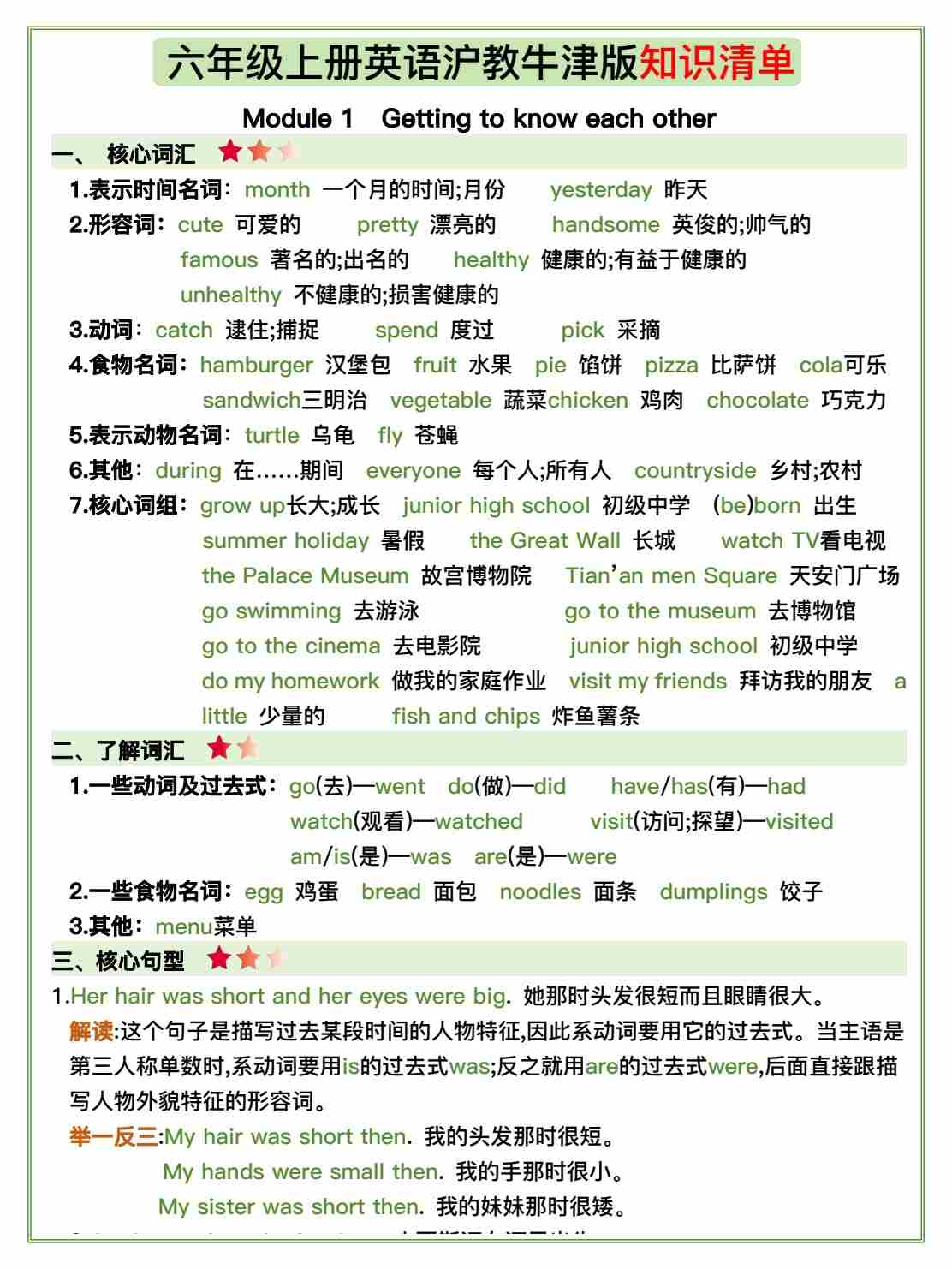 六年级上册英语沪教牛津版知识清单