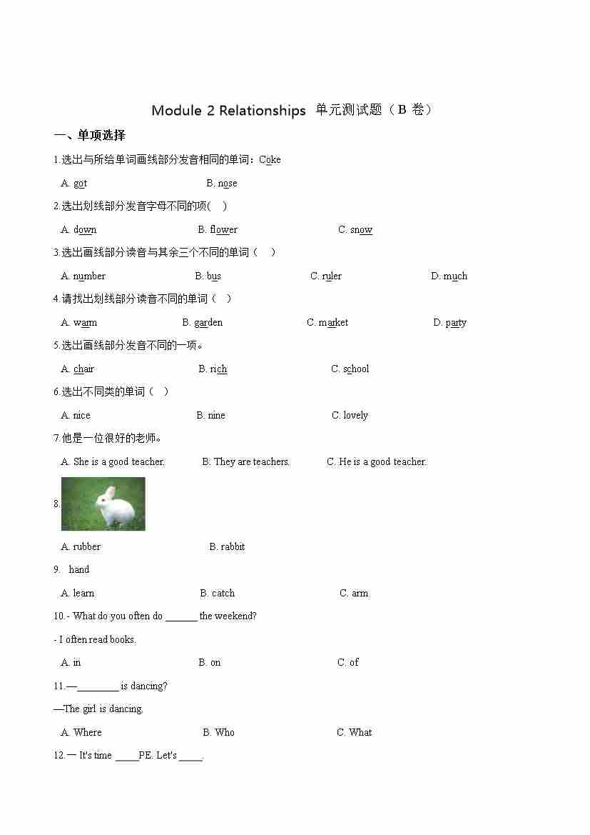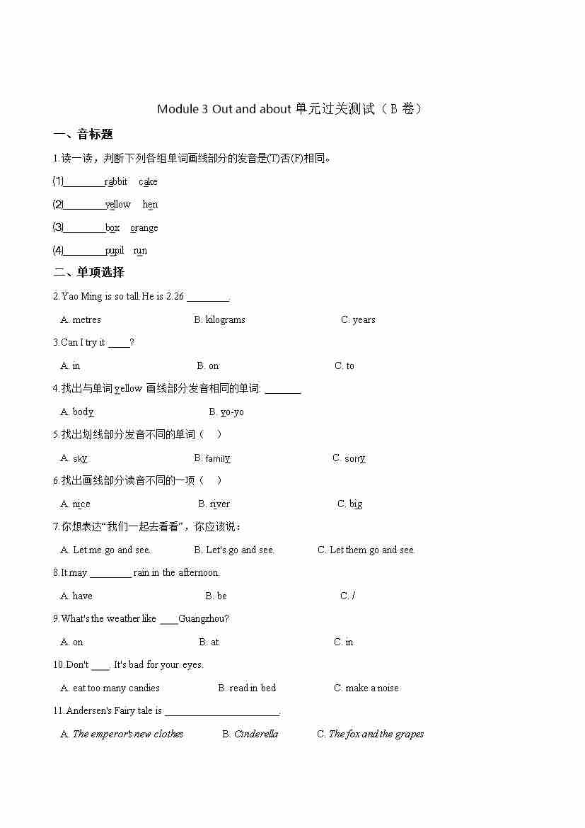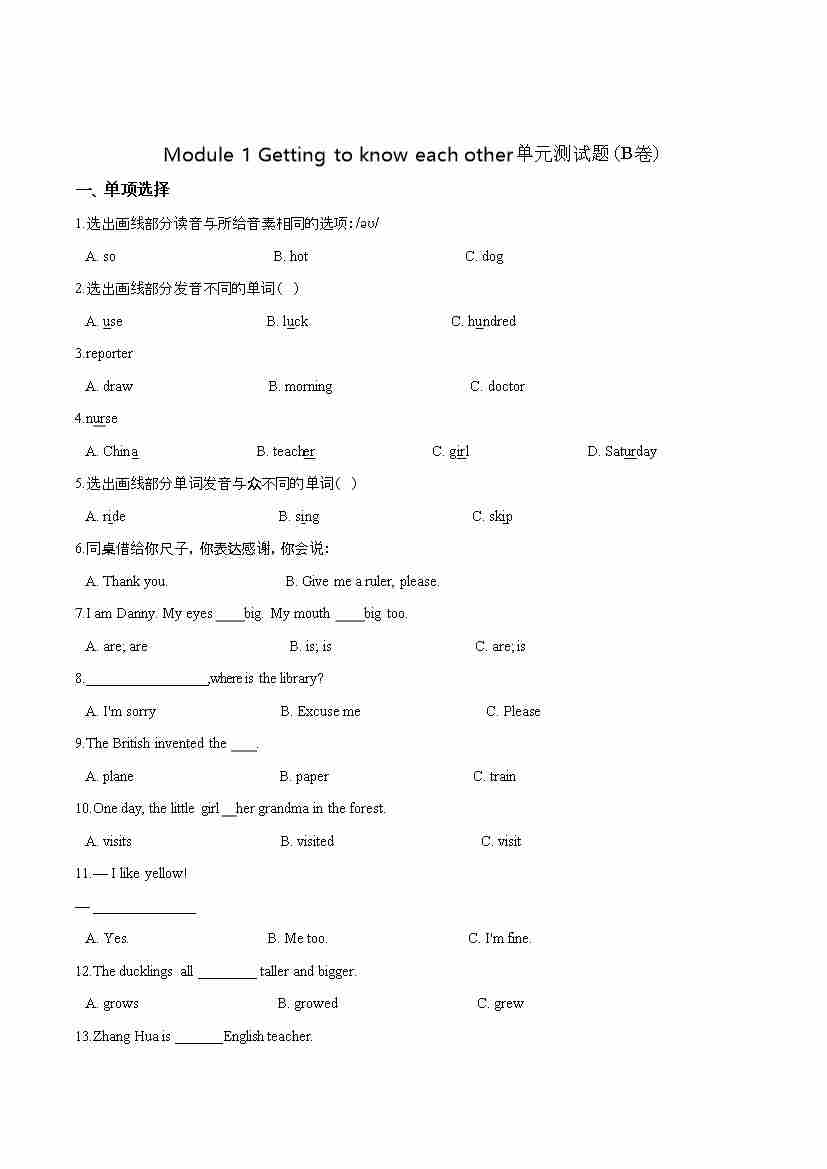 第一单元测试(B卷) -Module 1 Getting to know each other 牛津上海版(三起)(word版,含答案解析)