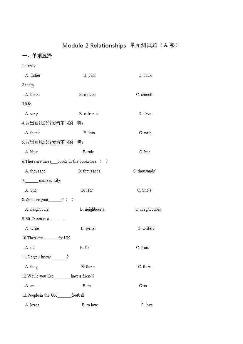 英语第二单元测试(A卷) -Module 2 Relationships 牛津上海版(三起)(word版,含答案解析)